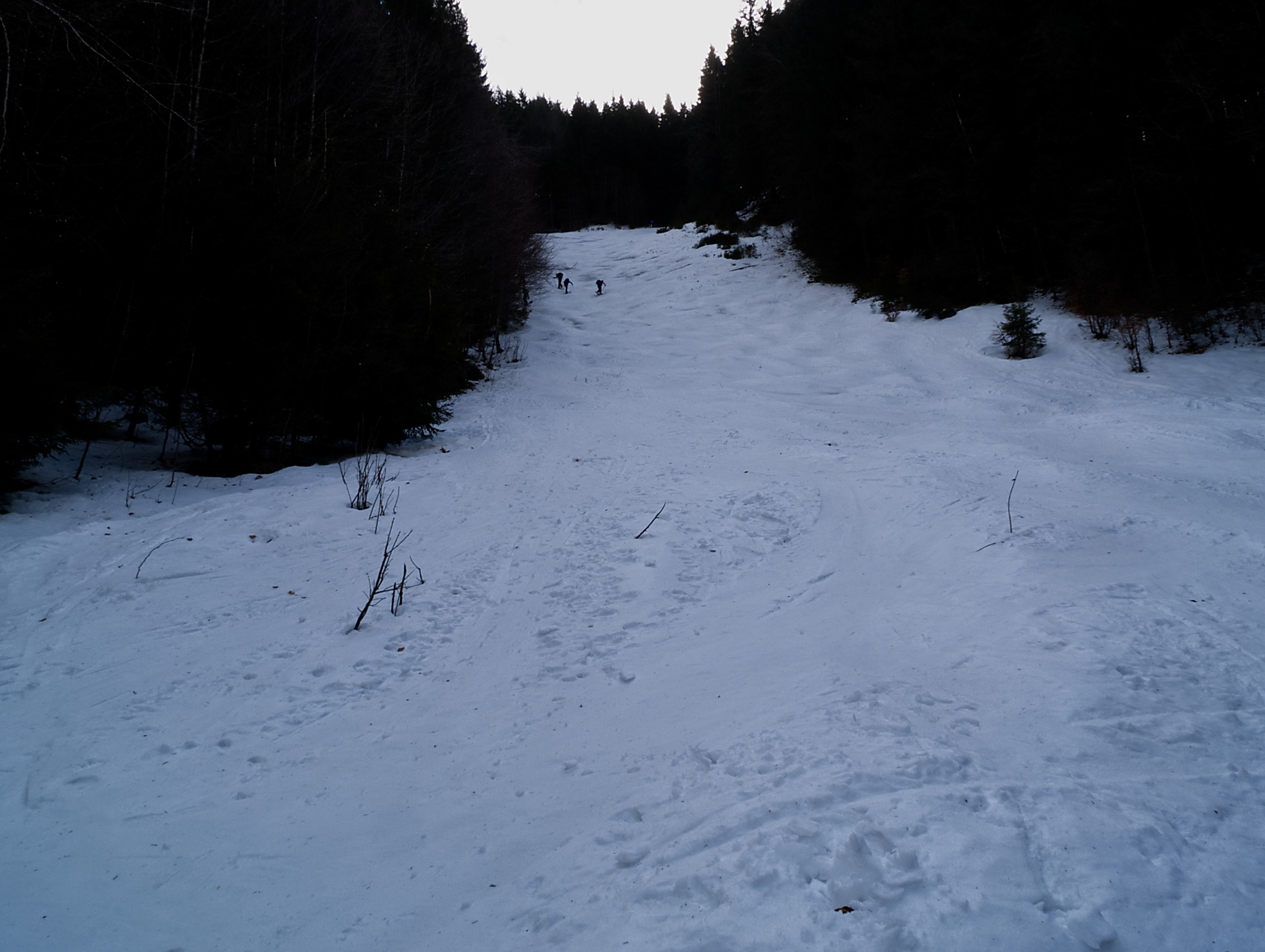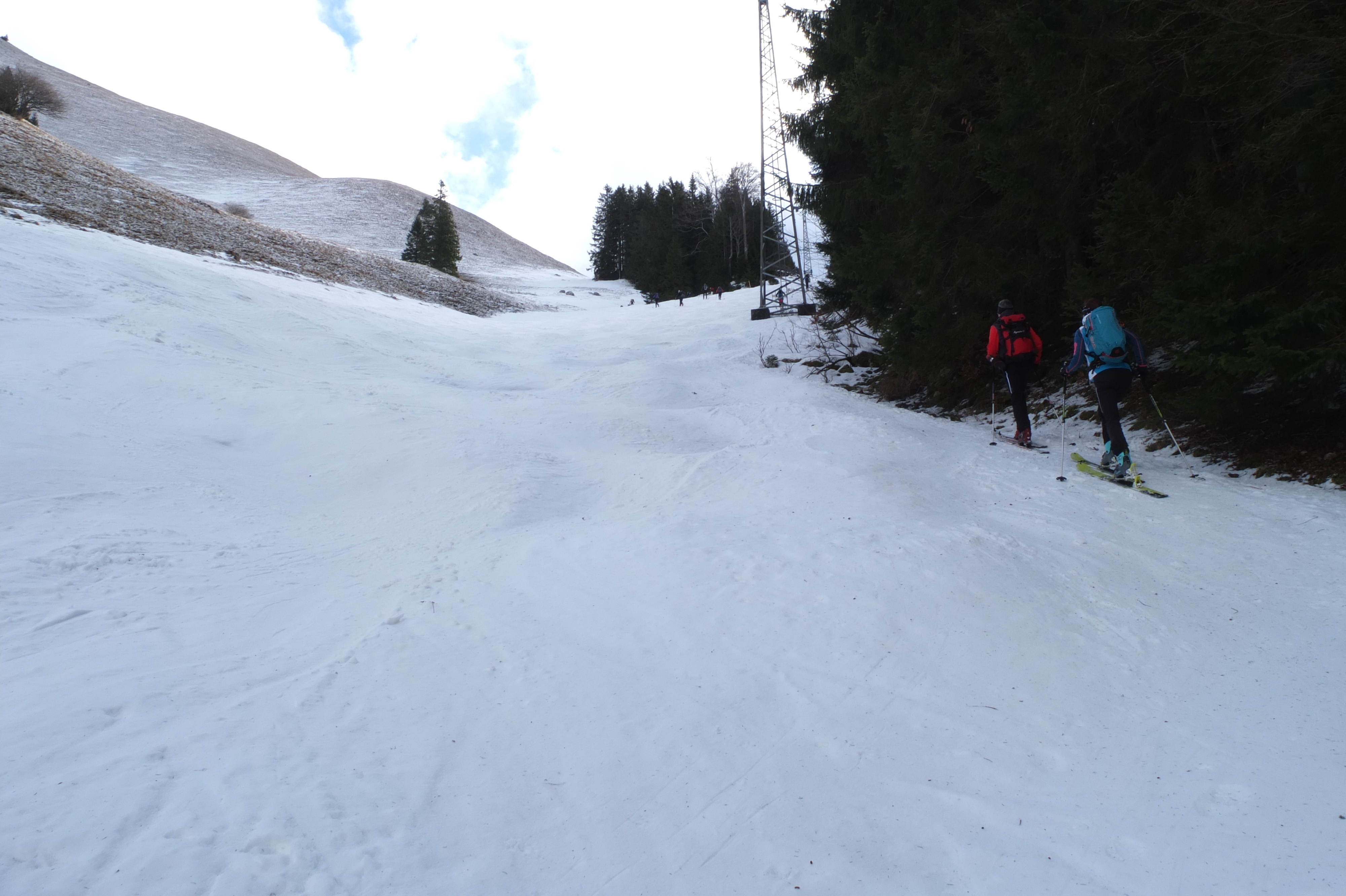 Tourenverhältnisse: kein Neuschnee, harte Schneeunterlage beim Aufstieg am Vormittag und der Abfahrt Richtung Krottenthaler Alm, nachmittags angenehmes Abfahren über die ehemalige Piste der Taubensteinbahn, da der Schnee etwas weicher wurde.