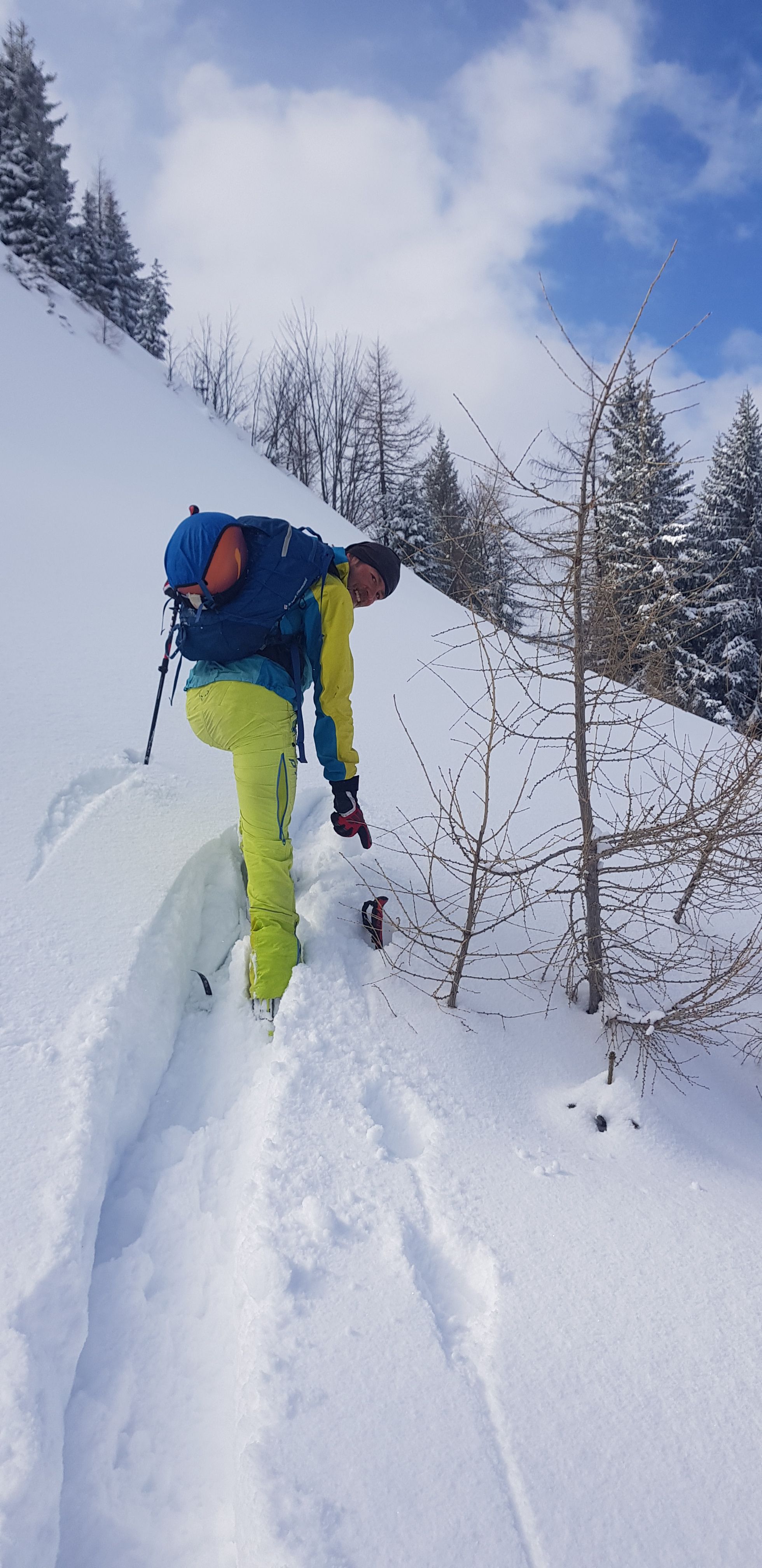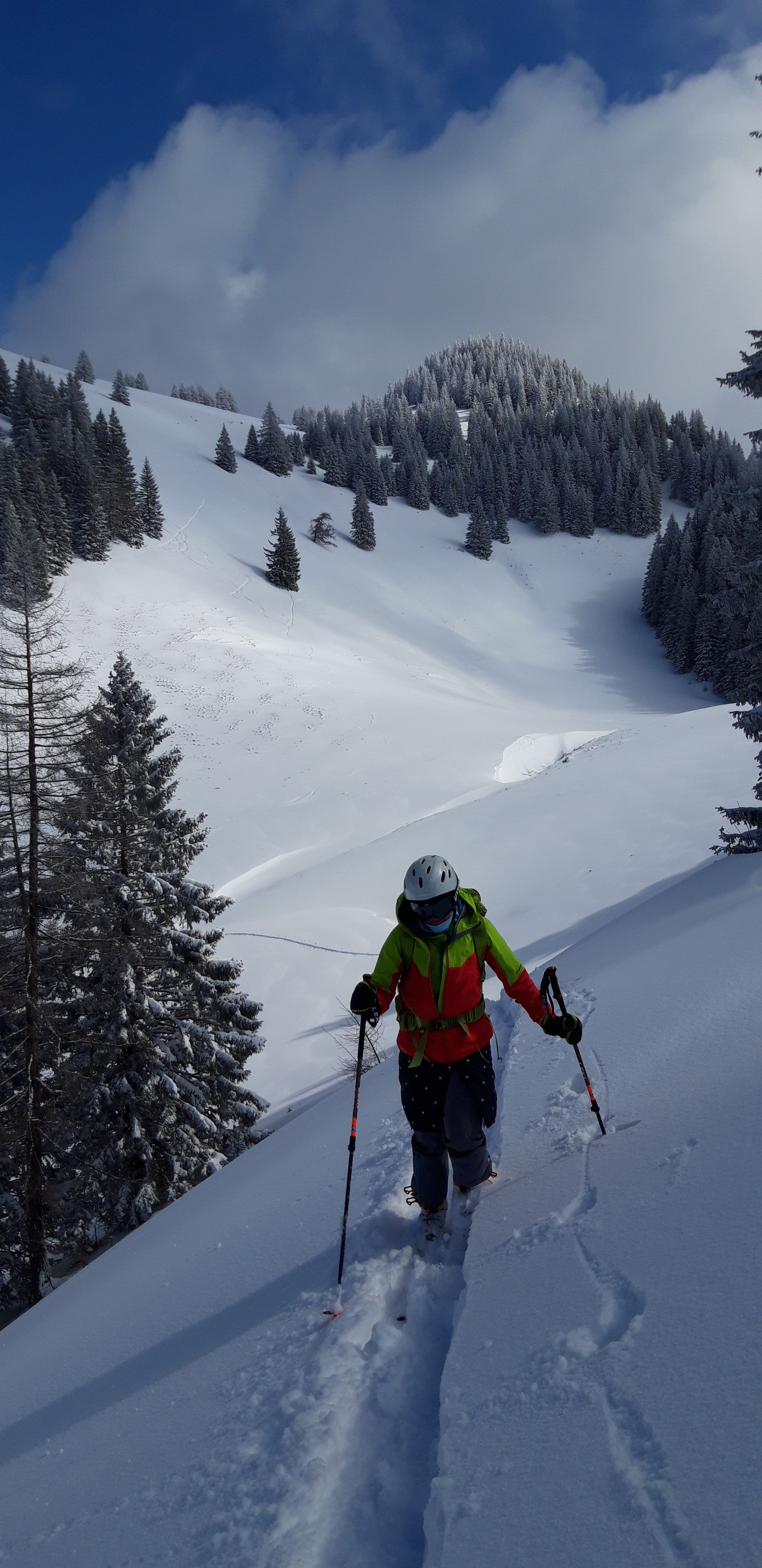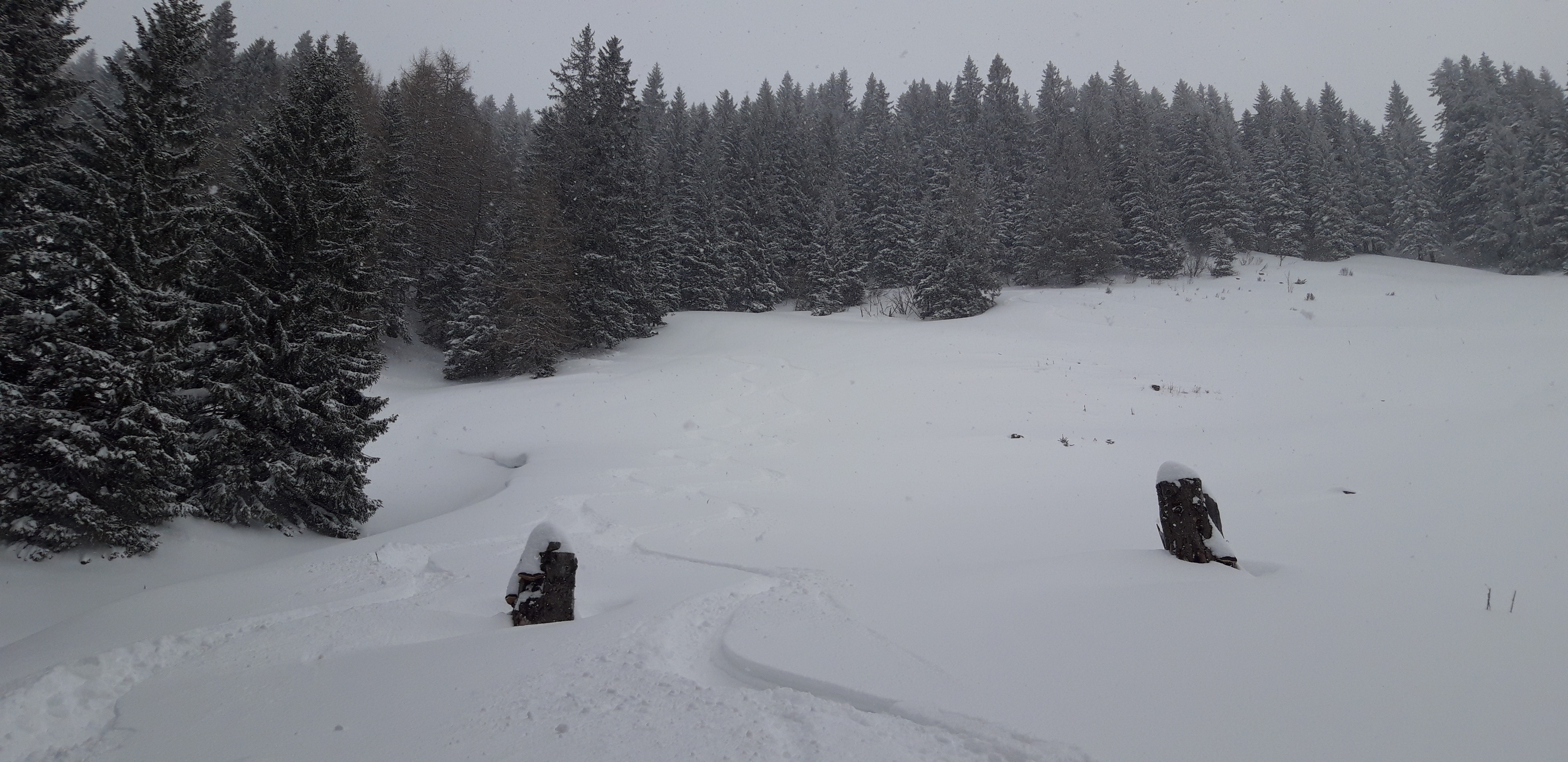 Tourenverhältnisse: Ausgezeichnet. Die Schneemengen werden immer größer und oberhalb von etwa 900 Metern hat es feinsten Pulver (unterhalb etwas nasserer Schnee). Wir sind über die Seelacher Alm zum Gipfel und dort mehrere Varianten gefahren. Die Hänge sind zwar etwas kurz (max. 250 Hm), aber sehr schön - für einmal hoch und dann gleich wieder ins Tal ist es fast zu schade. Auch auf den einen oder anderen Mugel östlich der Seelach Alm sollte man nicht verzichten, wenn man schon mal da ist.