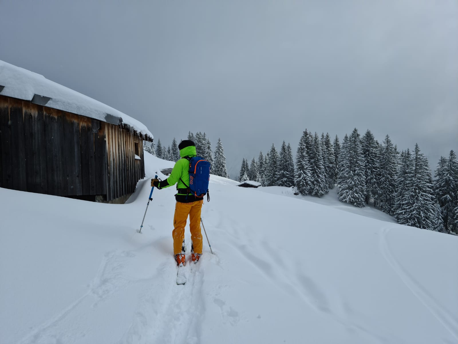 Tourenverhältnisse: Heute eine Pre-Work-Skitour oder Guten-Morgen-Skitour. In der Nacht hat es nur geringen Neuschneezuwachs gegeben, so dass die Spuren und Scherhaufen von gestern alle noch sichtbar waren, aber weil der Schnee so super pulvrig ist, hat man sie nicht gespürt. Für mich heute die bisher besten Verhältnisse der Saison. Besonders schön die Abfahrt über den steilen Osthang hinunter zur Grünseealm. Wiederaufstieg und zurück zum PP. Die Piste war ebenfalls sehr schön zum Skifahren! Allerdings waren dann im Aufstieg schon recht viele Leute unterwegs. Wenn es also nicht weiterschneit (sollte es aber...), dann wäre hier bald wieder alles z'amg'fahrn.
