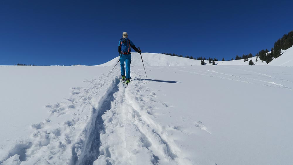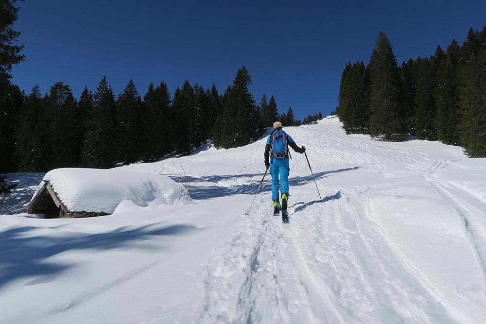 Tourenverhältnisse: Die Bilder von unserer Tourenbeschreibung Seekarkreuz über Schwarzentennalm sind schon sehr in die Jahre gekommen (die neue Bilder werde in kürze bei der Routenbeschreibung ausgetauscht), daher heute diese Route, obwohl es skifahrerisch sicher lohnendere Touren gibt, aber landschaftlich ist sie top und der Gipfelhang eh vom Allerfeinsten. Und ich war abgesehen vom Gipfelbereich fast alleine unterwegs.