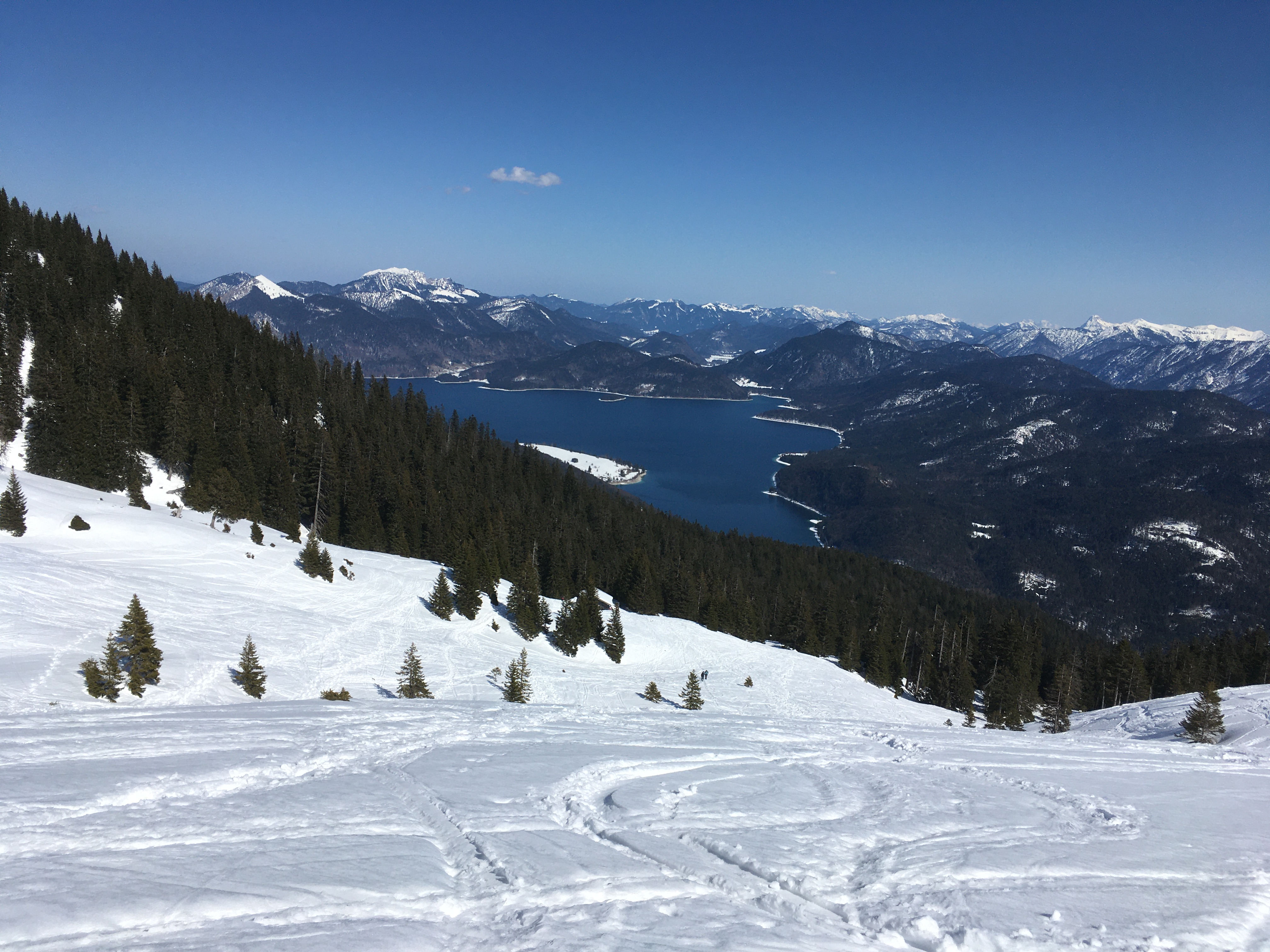 Heute war es sehr warm und es gab eine starke Sonneneinstrahlung - habe mir prompt einen Sonnenbrand geholt. Und es waren sehr viel Leute unterwegs, davon erstaunlich viele ohne Skier oder Schneeschuhe. Meines Erachtens ist das zur Zeit aber nicht sinnvoll, man sinkt teilweise doch tief ein. Und eine Bitte an diese Wanderer: Bitte nicht die Hänge auf voller Breite "perforieren". Ohnehin dürfte es sich in einer bestehenden Fußspur leichter gehen - und die Skiaufstiegsspur ist auch nicht geeignet, als Wanderer leichter voranzukommen, bei Benutzung aber für nachfolgende Skitourengeher schlecht zu gehen.