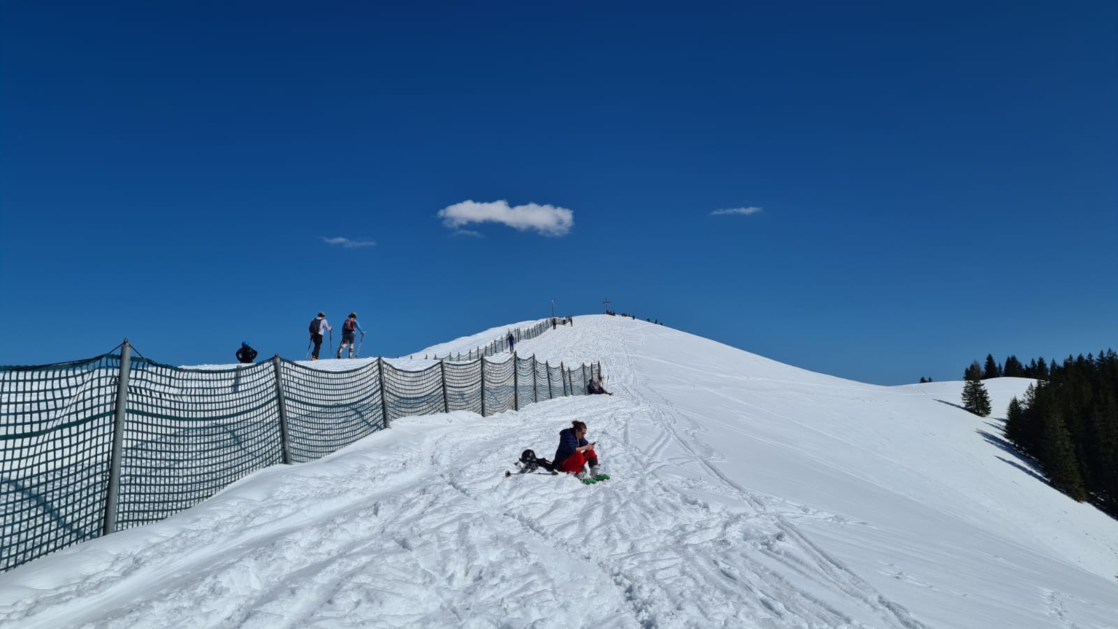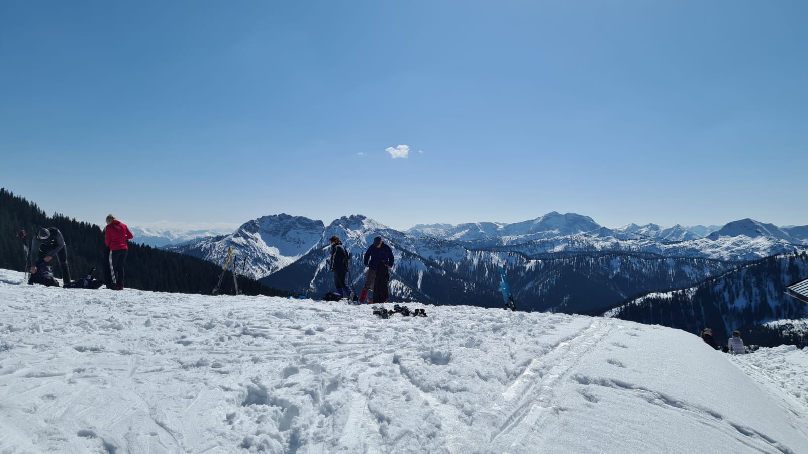 Tourenverhältnisse: Firnige Piste - geht super. Schnee mehr als ausreichend und auch noch sehr fein zum Fahren. Wetter: Sehr warm... einer ist in der kurzen Hose runtergefahren