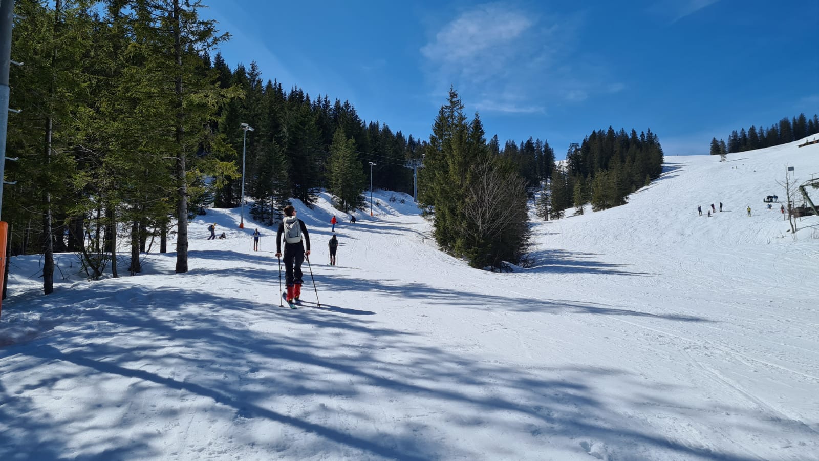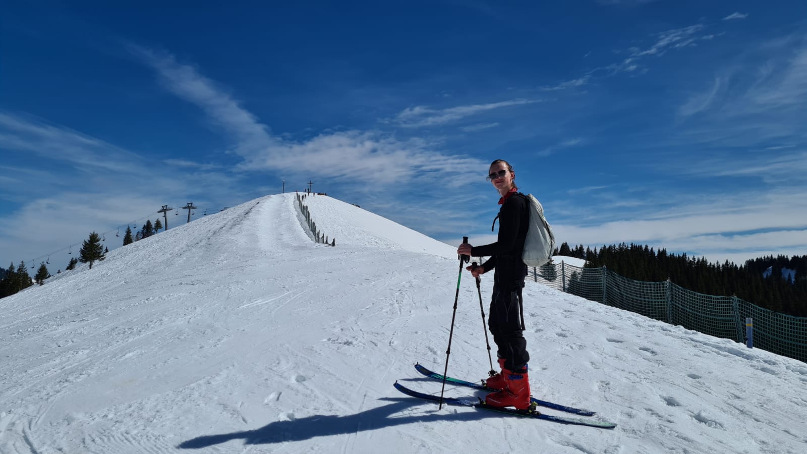 Wunderbare Firn-Verhälntisse auf der Piste. Wetter: warm, tolle Fernsicht
