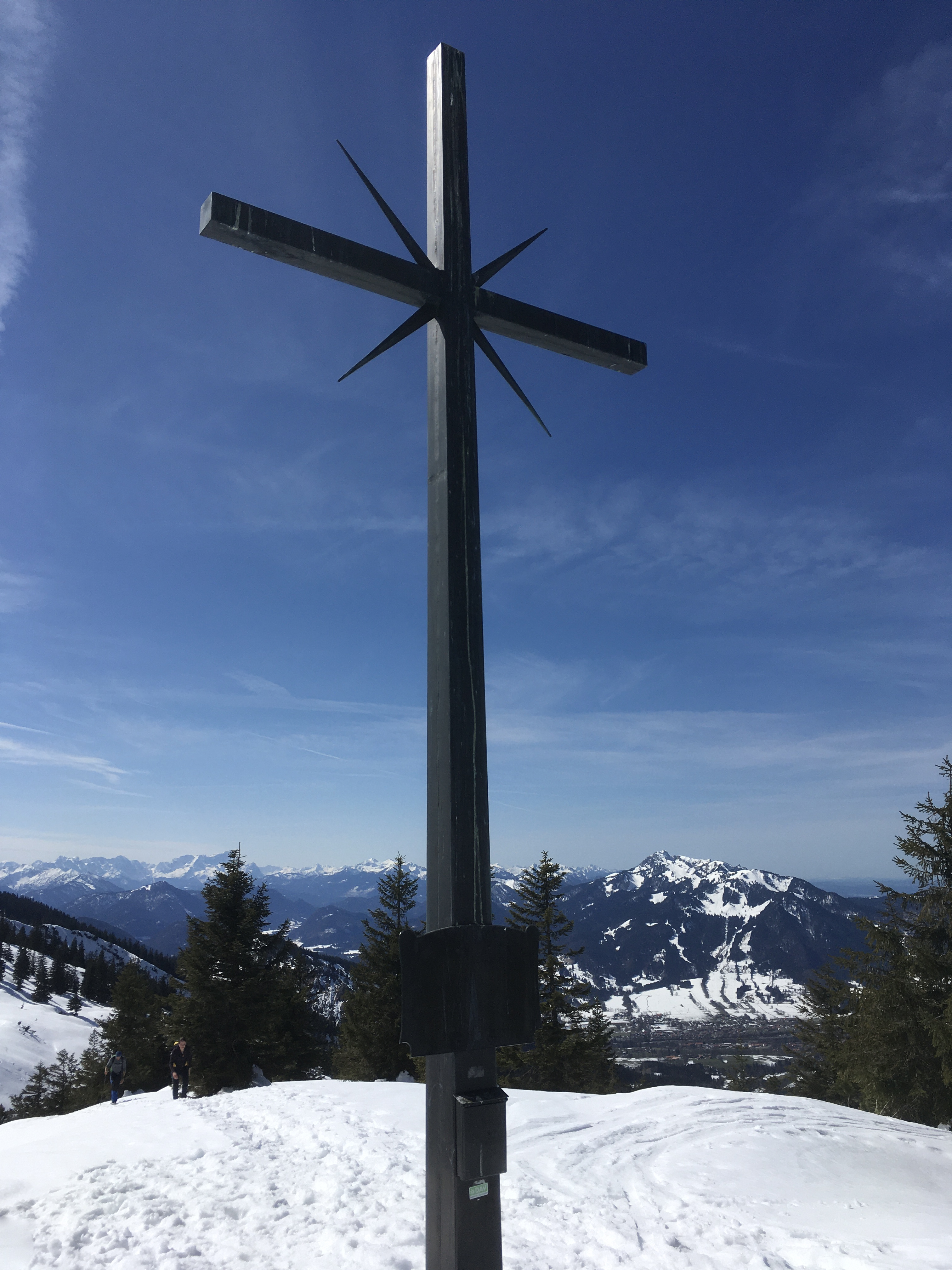 Das Gipfelkreuz vor dem Brauneck: