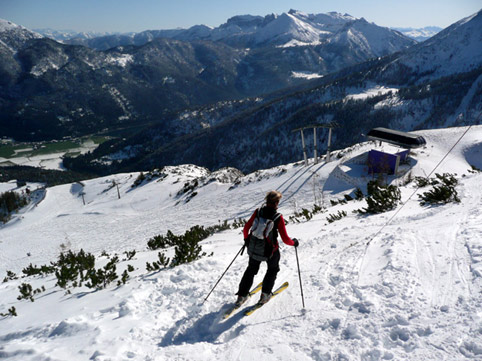 Nach der Tour am Samstag im Schneetreiben mit ich heute nochmal bei schönem Wetter via Nordhang auf den Christlumkopf. Die etwas pessimistische Einschätzung vom Wastl kann ich nicht teilen, denn: