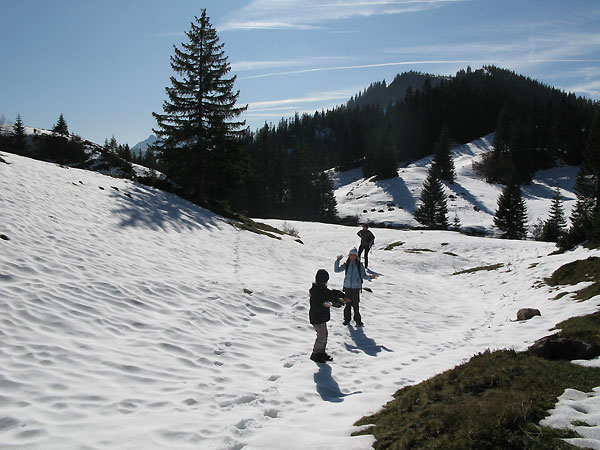 3. Soweit einsehbar gab es auch auf der Route von Ettenhausen herauf (Ostroute aus dem Achental) deutlich weniger Schnee. Der Südrücken ist dann beinahe komplett aper - nur Schneereste.