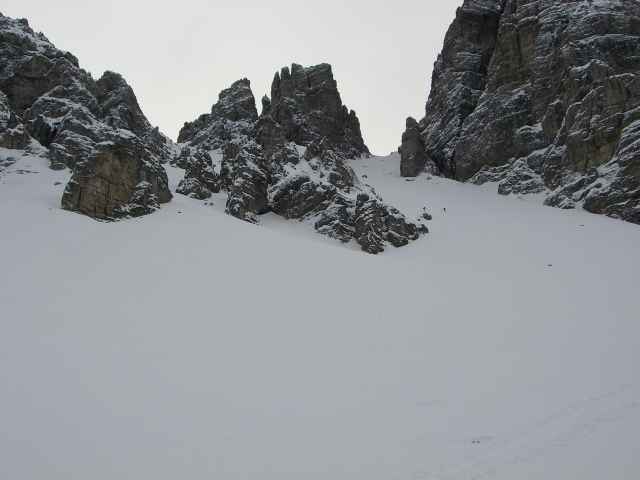 Tourenverhältnisse: Heute auch mal nach Axam, aber nach ein bisschen umschauen nicht mit den meisten zum Hoadl sondern auf den Ampferstein. die ersten paar mter auf Piste dann links weg, einen mittelsteilen Hang hoch, nach links ins Lizumer Kar und steil hoch zu einer Scharte, zu Fuß die letzten Meter zum Gipfel des Ampfersteins.