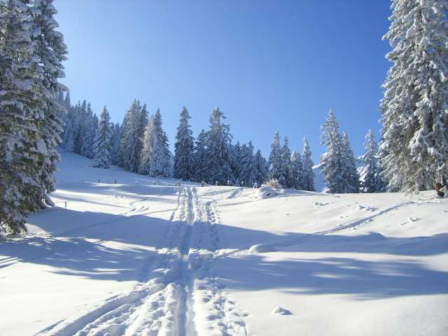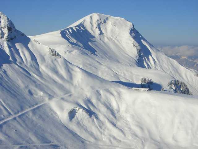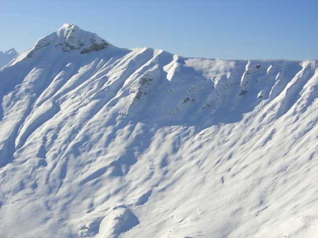 Tourenverhältnisse: bis zur Falkenmoosalm wenig Schnee, darüber gute Verhältnisse, feiner Pulver, wenig zerfahren.
