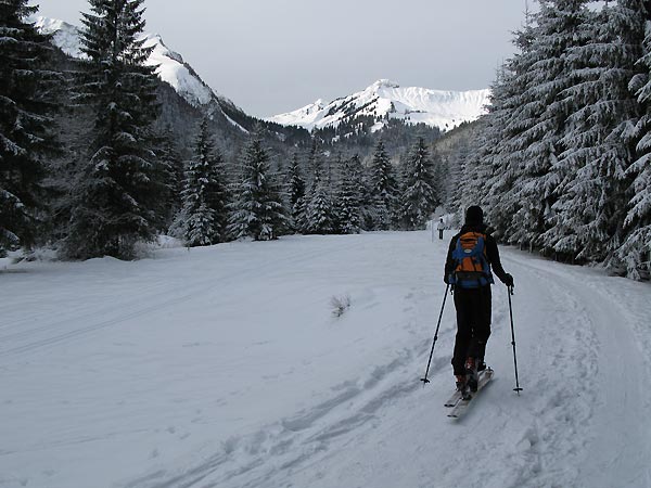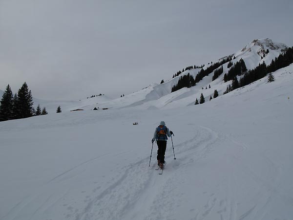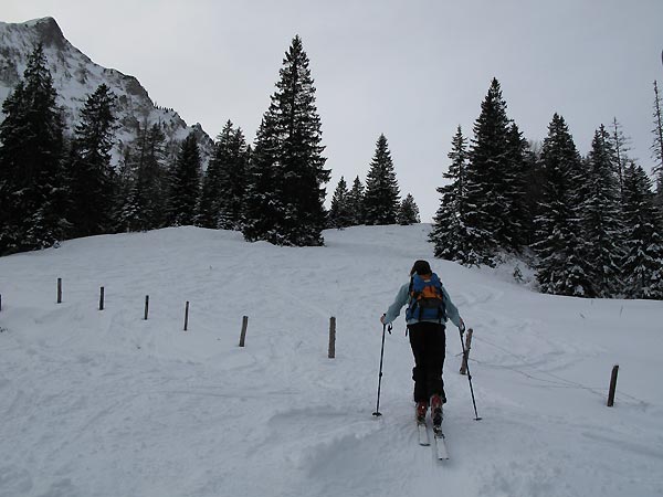 Tourenverhältnisse: Gröbner Hals: Wie Thomas schon berichtet hat (Danke Dir!!!) erstaunlich gut. Auf dem Forstweg Eis oder dicke Harschschicht mit 5 bis 10 cm Neuschneeauflage. Das reicht um gut rauf und runter zu kommen. Oben dann ca. 15 cm Neuschnee auf einer tragenden Harschschicht. Oben ist der Neuschnee überwiegend leicht windgepresst, aber doch noch ganz gut zu fahren, in der Waldschneise dann feiner Pulver aber schon recht verspurt.