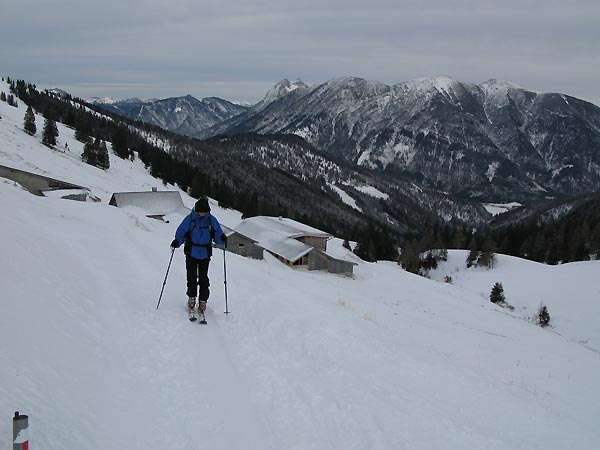 Hochplatte: hier habe ich mich am Ausgangspunkt bei einem Skitourengeher erkundigt. Auf der Forststraße soll es gerade reichen, der kleine Waldweg (den die meisten im Aufstieg) benutzen hat keinen Schnee (Tregen ist angesagt). Oben soll es dann auch ganz gut sein (wahrscheinlich ähnlich wie Gröbner Hals)