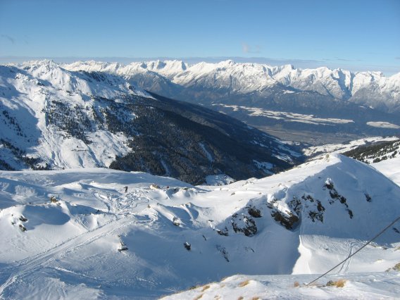 Bilder 1 bis 3: Aussicht vom Gipfel (Bild 1: Aufstiegsweg und Nordkette; Bild 2: Hirzer [Bildmitte]; Bild 3: Gilfert)