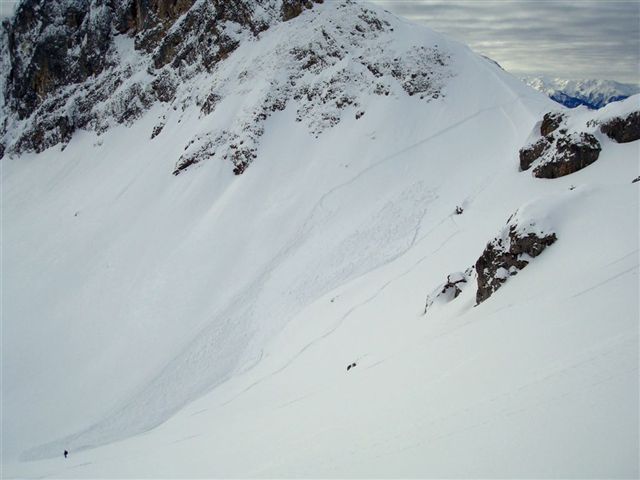 Gefahreneinschätzung: gering, aber auch bei einem 2er sind Schneebretter möglich, wie wir life beobachten konnten, als ein Tourengeher von der Grubascharte auf dem steilen, nordseitigen Hang zum Grubasee hinab fuhr. Nach nur einem Schwung löste sich ein kleines Schneebrett. Der Tourengeher konnte unbeschadet nach links aus dem Gefahrenbereich heraus fahren. Es war nicht viel Schnee, er hätte sich vermutlich selbst befreien können. Die obere Schneedecke hatte an diesem Hang einfach keine Verbindung zur Altschneedecke. Dazu kam eine Schneeverfrachtung/Wächte am Kamm. Eigentlich genau die Gefahrensituation, vor der im Lawinenlagebericht gewarnt wurde. (Foto im Anhang)