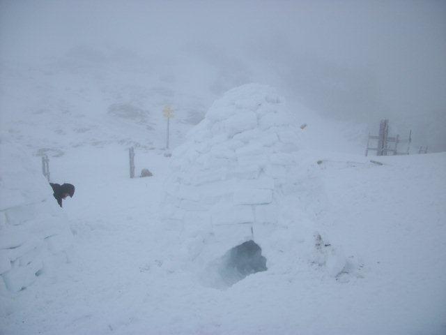 Bei dem gesrigen Nebel hatten wir - 10 Mitglieder der DAV-Sektion Turner-Alpenkränzchen und "Expeditionsleiter" Johann - nichts besseres zu tun als vor dem Rotwandhaus drei Iglus zu bauen. Wenn kein großer Wärmeeinbruch kommt dann werden sie noch eine zeitlang dort stehen und können genutzt werden wenn die Hütte überfüllt ist oder einfach nur so. Dann aber warmen Schlafsack und Isomatte mitbringen und an uns denken, steckt ja doch ein halber Tag Arbeit drin!