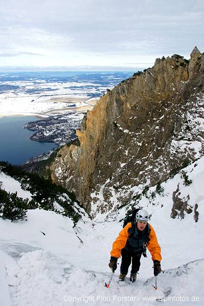 Am 17.1. das "Linke Gully" am Jochberg gemacht. Rampe bis zur ersten Stufe frei, da wir insg. 7 Leute waren, haben wir uns dann auf die verschiedenen Äste aufgeteilt. Rechts sehr gutes und dickes Eis, links eher dünn, eine Länge mixed. Teilweise war es sehr nass...dafür Softice! Ich mit meinem Seilpartner Ausstieg über die klassiche Rinne...10 Min. vor uns hat eine Lawine diese ausgeräumt...war dann ganz gut zu gehen. Oben am Gipfel sogar noch etwas Sonne. Drei von uns sind oben den rechten Fall geklettert (gutes Eis) zur linken Ausstiegsrampe, zwei sind von links her zur Ausstiegsrampe, war nach ihren Aussagen oben bisschen heikel, und sie waren erst 2 Std. nach uns (mittlerweile im Schneesturm) oben...Abstieg problemlos. Einige von unserer Mannschaft sind am Tag zuvor schon die "Rechte Route" gegangen, gutes Eis und alles seilfrei. Wetter war besser als angesagt, von der Temperatur gerade noch okay. Es wehte teils starker Wind, es kamnen auch einige Steine herunter, und auch bei wenig Schnee kann es Lawinen geben...