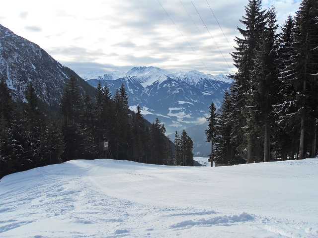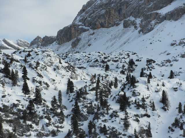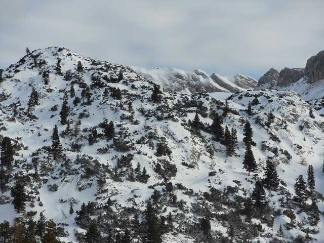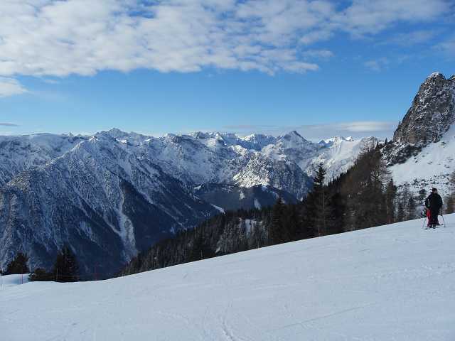 Tourenverhältnisse: weißblauer Himmel, nachdem ich beim Aufstieg an der Grubastiege bereits mit den Fellen über die Felsen steigen mußte, habe ich die Tour wegen Schneemangel abgebrochen