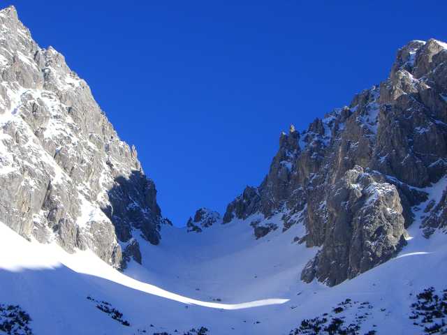 Gefahreneinschätzung: gering, beim Aufstieg zur Grünsteinscharte ein Abgang aus den Felswänden