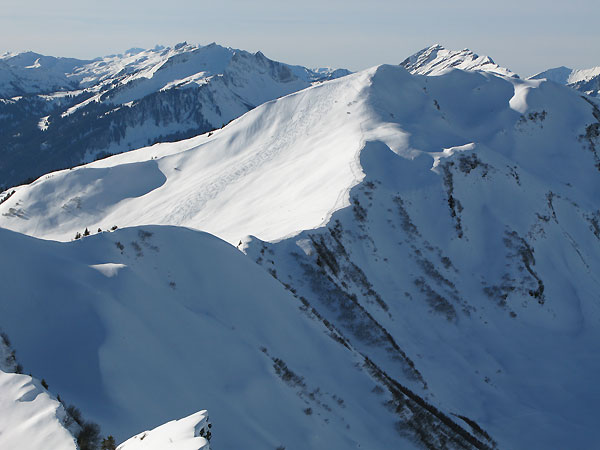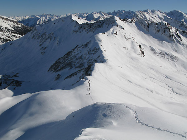 Tourenverhältnisse: Top-Tourenverhältnisse - die bisher schönste Skitour der Saison. 10 bis 20 cm feinster Pulver auf guter ausreichender Altschneedecke.