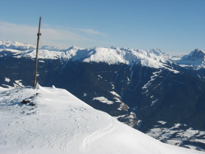 Tourenverhältnisse: Es liegt genügend Schnee, so dass man das Auto wieder problemlos erreichen kann. Der Schnee war meist hart, aber gut griffig (pistenmäßig eingefahren). Für Firn hats noch nicht gereicht. Super Aussichtsberg bei Kaiserwetter.