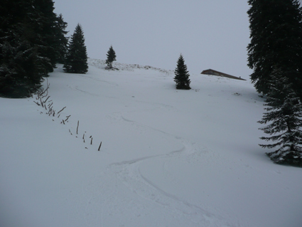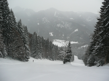 Nach dem Neuschnee von gestern hat es mich heute früh zum Hirschberg gezogen, wo die Piste prima präpariert war (nahezu steinfrei). Im freien Gelände durfte ich heute als Erster die Spur legen (ich hoffe, es passt; drei Damen am Gipfel, die bald danach kamen, fanden sie okay). Je nach Windeinfluss 20 bis 50 cm prima Pulverschnee. Zwischen Gipfel und Raualm super Verhältnisse, rund um die Almen teils abgeblasen (auch bei meiner Waldvariantenabfahrt ließ sich Steinkontakt nicht vermeiden), unten heraus bestens.