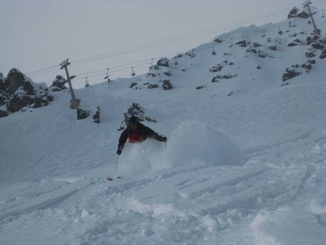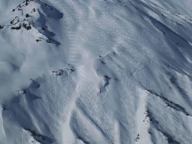 Tourenverhältnisse: Es hatte zwar am Samstag ca. 30 cm Neuschnee und auch Nebel. Generell hat es am Arlberg immer noch unterdurchschnittliche Schneehöhen. Die immer gefahrenen Standards gingen super und waren im nu zusammerngefahren. Doch mit etwas Gespür und Kartenstudium fand man noch wenig verspurte Hänge. Bis zum Montag war so ziemlach alles verfahren. Dafür war das Wetter ein Traum.