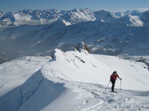 Gefahreneinschätzung: Heute unproblematisch. Osthang vom Gipfel ziemlich zerfahren. Auch die schattseitigen