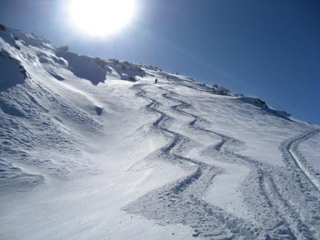 Gefahreneinschätzung: Wie auch im Bericht von mountie (Kl. Gilfert)schon beschrieben, noch immer erheblich. Triebschnee u. Rinnen beachten. Auch wir haben kleinere Rutsche auslösen können und andere beobachtet. Zum Teil grundlose, unverfestigte Schneedecke.