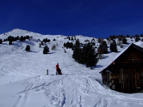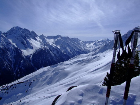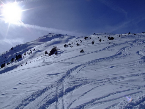 Route: Aufstieg über Forstweg/Rodelbahn bis zur Auffang-Alm, dann rechts durch ein kleines Tal und eine schöne Waldschneise zu den weiten Hängen unterhalb der Seblasspitze. Hier weit nach rechts ausholen, sodaß man für den weiteren Aufstieg die sicheren Gratrücken benutzen kann. Abstieg im oberen Bereich gleich, dann nehmen wir die Variante über die Brandstatt-Alm und die Rodelbahn