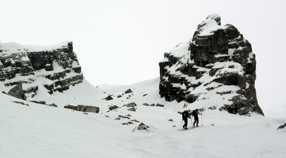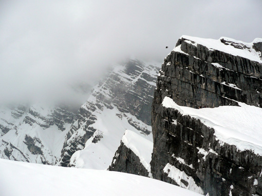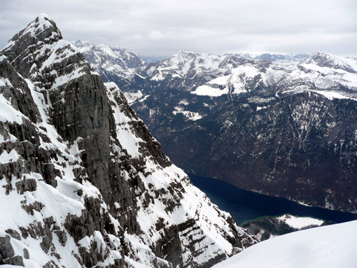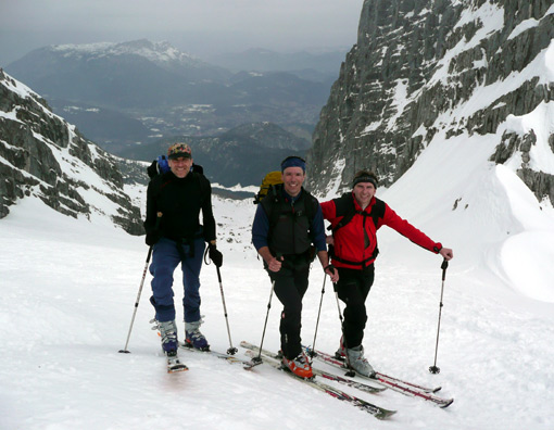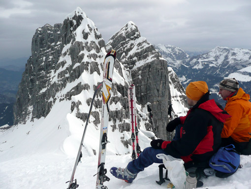 Auf der Skitour http://www.tourentipp.de/de/touren/details.php?id=290 heute geringes Lawinenrisiko, Schnee-Regengrenze bei ca. 2000 m, teils schwerer aber gut fahrbarer Schnee, mit 2x kurz Skiabschnallen Abfahrt bis zum Parkplatz Hammerstiel.