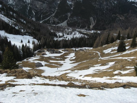 Tourenverhältnisse: Abfahrt im oberen Teil anfangs etwas hart, dann bereits firnig (pistenartig eingefahren), dann sulzig und zuletzt sumpfig.
