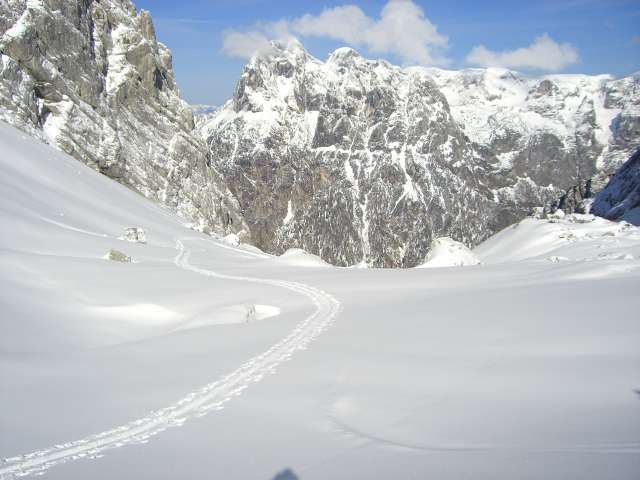 Tourenverhältnisse: Skitragen bis ca 1400m, 1,5 Std, 10-15 cm frischer Pulver, tlw Harsch darunter tlw auch mal ein Stein (aufpassen!) aber in der Abfahrt 1100m traumhafter unverspurter Pulver