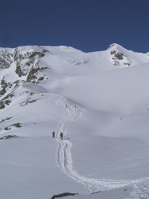 der gesamte Aufstieg am Grieskogelferner (Gipfel in Bildmitte)