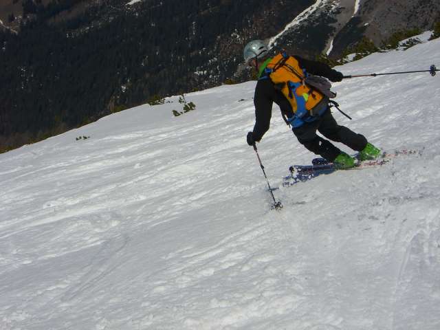 Tourenverhältnisse: am Di abends aufs Stahlhaus (insgesamt 4 Gäste), Mi 6:20 Start Route grossteils wie in TT beschrieben, wir haben halt den Schlumkopf auch noch mitgenommen, am Schneibstein keine(!) Harcheisen nötig (auf der ganzen Reibn nicht) absolut lässige Spur, kaum Wind, Funtenseetauern mit Ski bis zum Gipfel, Abfahrt zum Kärlingerhaus, am Do erst ganz normal zur Hundstodscharte und Abfahrt in die Schönwies, dann sind wir aber aufs Seehorn und runter nach Weissbach/Lofer da wir mitgekriegt haben, dass das Wimbachgries fast vollständig aper ist. Abfahrt vom Seehorn bester Firn und mit 3x abschnallen mit Ski bis Parkplatz