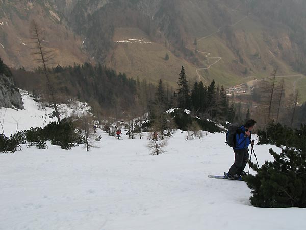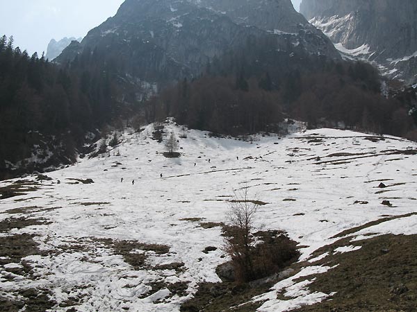 Prognose: bis zum Kar wird man bald tragen müssen, denn im Waldbereich ist jetzt schon recht dünn. Oben geht's noch länger gut.