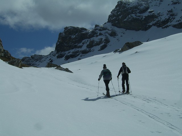 mit dem Taxi (auf 8.-- p.P., runter 7.-- p.P.) bis fast zur Lizumer Hütte, der Aufstieg mit Ski lohnt nicht mehr (3/4 der Strecke tragen); ab hier mit Ski weiter zum Torjoch, an der Ostflanke der Grauen Wand vorbei zum südseitigen Gipfelhang der Torspitze.