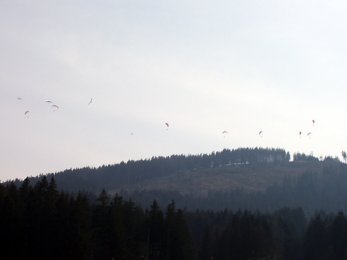 viele Gleitschirmflieger - anscheinend war heute gutes Flugwetter