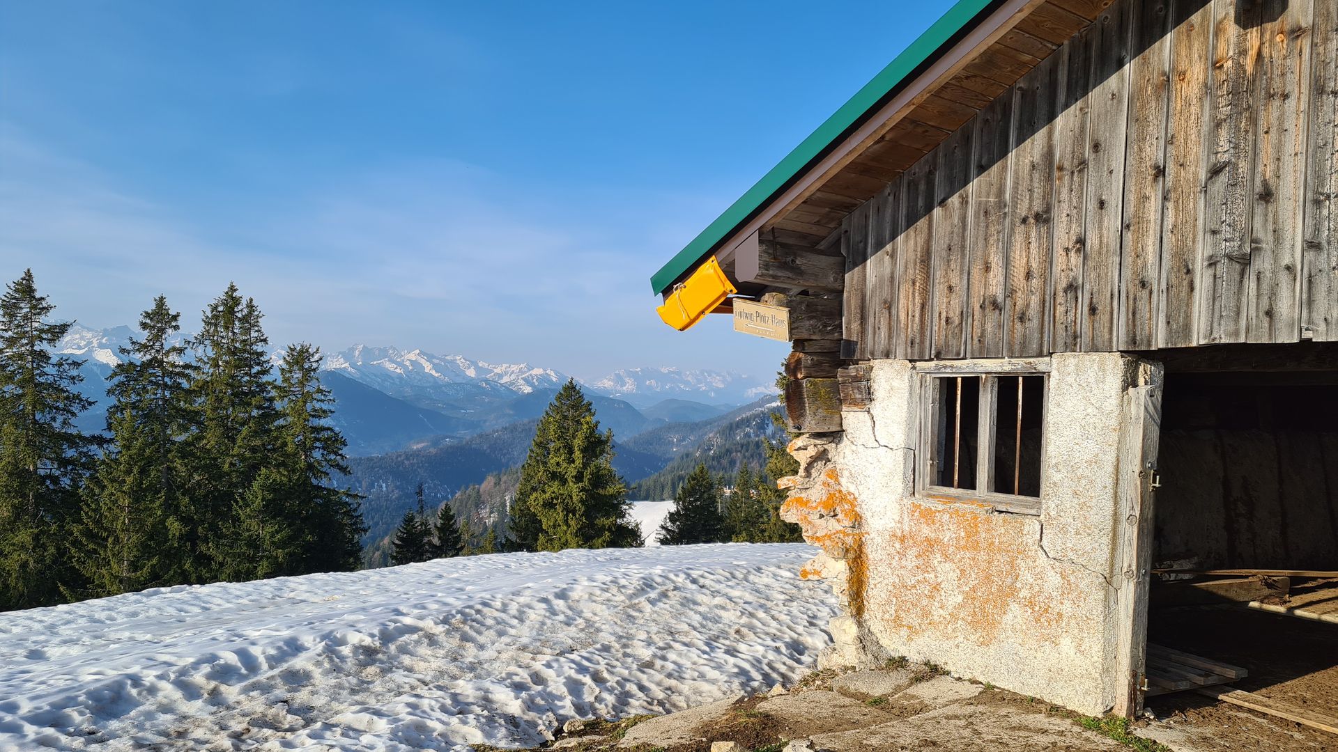 Der Draxlhang hat noch so viele Schneereste, so dass man gut hochgehen kann. Nur zwei Meter geht es über Batz. Ab Milchhäusl gute Schneeverhältnisse ohne irgendwelche aperen Stellen.