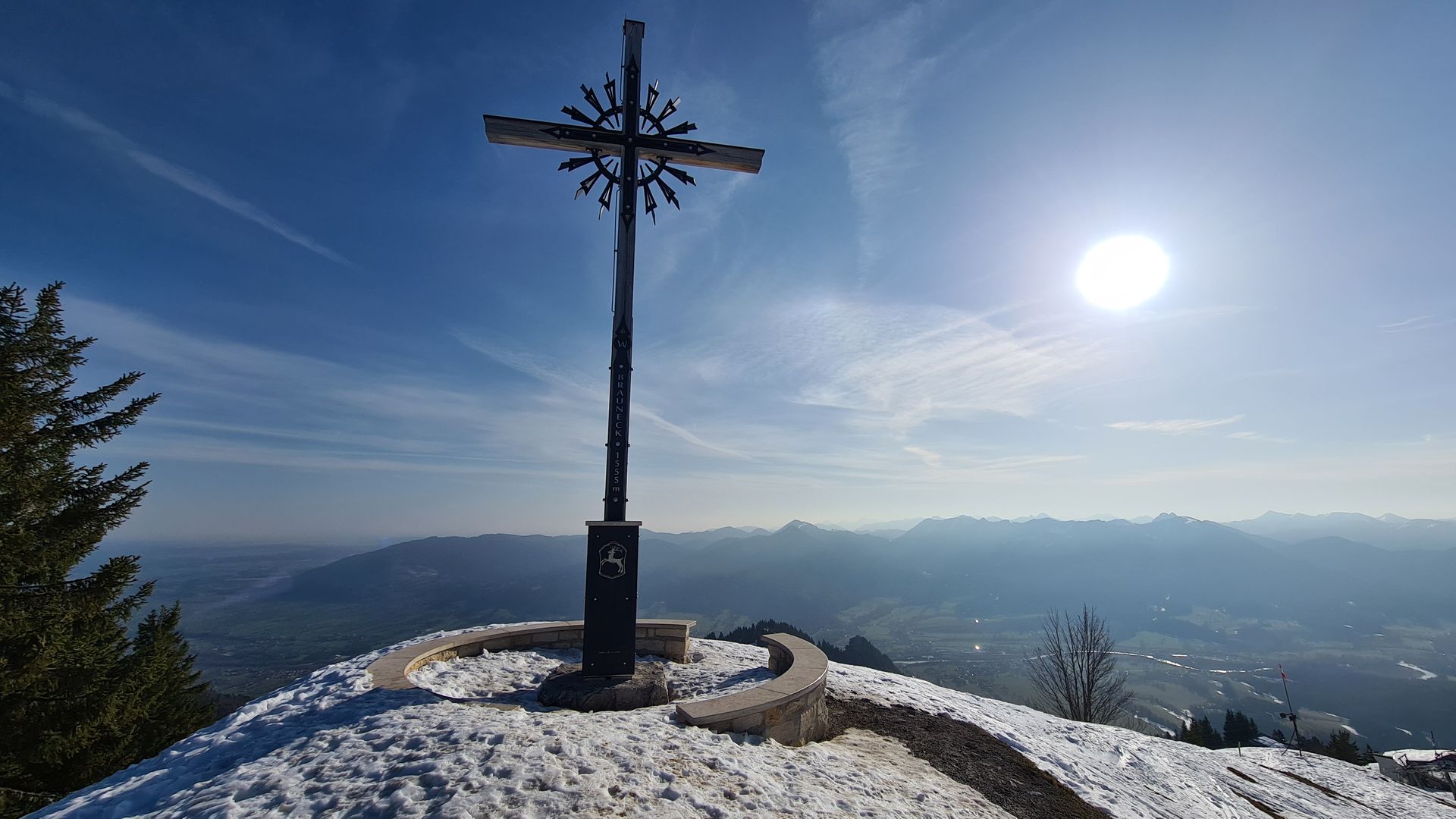Wunderbar sonnig, wenn auch noch leicht diesig, super Blick ins Karwendel, Wetterstein, zum Guffert. Was will man mehr, um bester Laune in die Arbeit zu fahren :-).