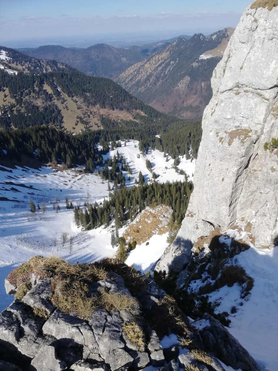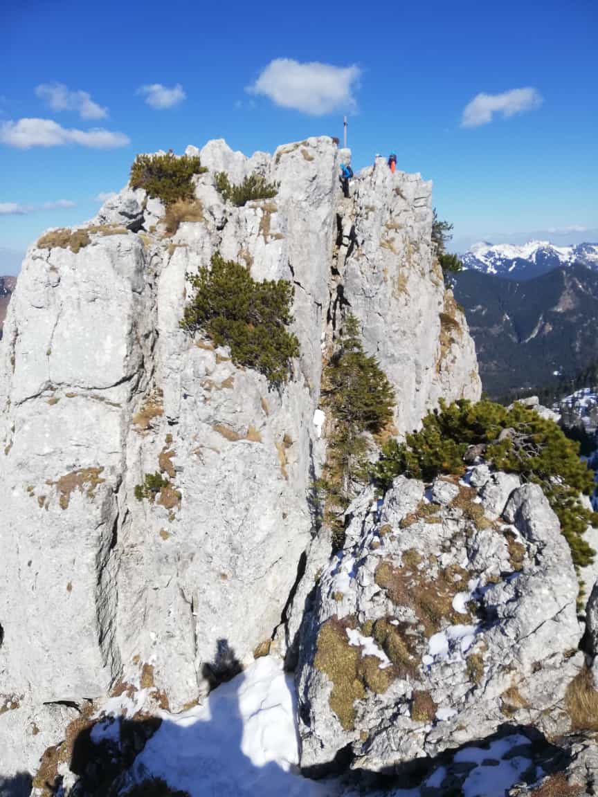 Erstaunlich wenig los, wir haben nur fünf Skifahrer und etwa zehn Fußgänger/Kletterer getroffen.