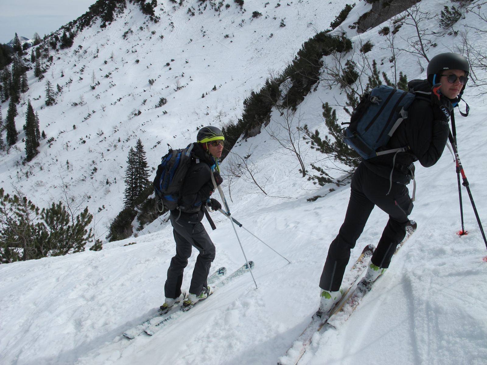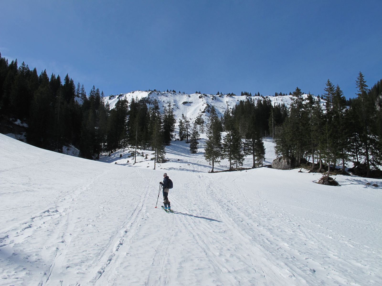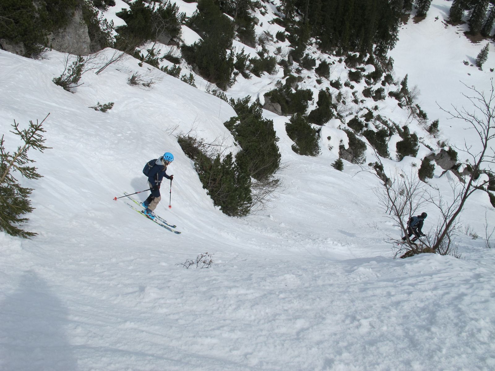 Nochmal die Plankensteinrunde, tragen bis kurz hinter der Sieblihütte oder ein paarmal abschnallen. Bis dorthin auf der Forststraße ein Fleckerlteppich. aber dann sehr ordentliche Verhältnisse. In den Abfahrten sehr schöner Firn.