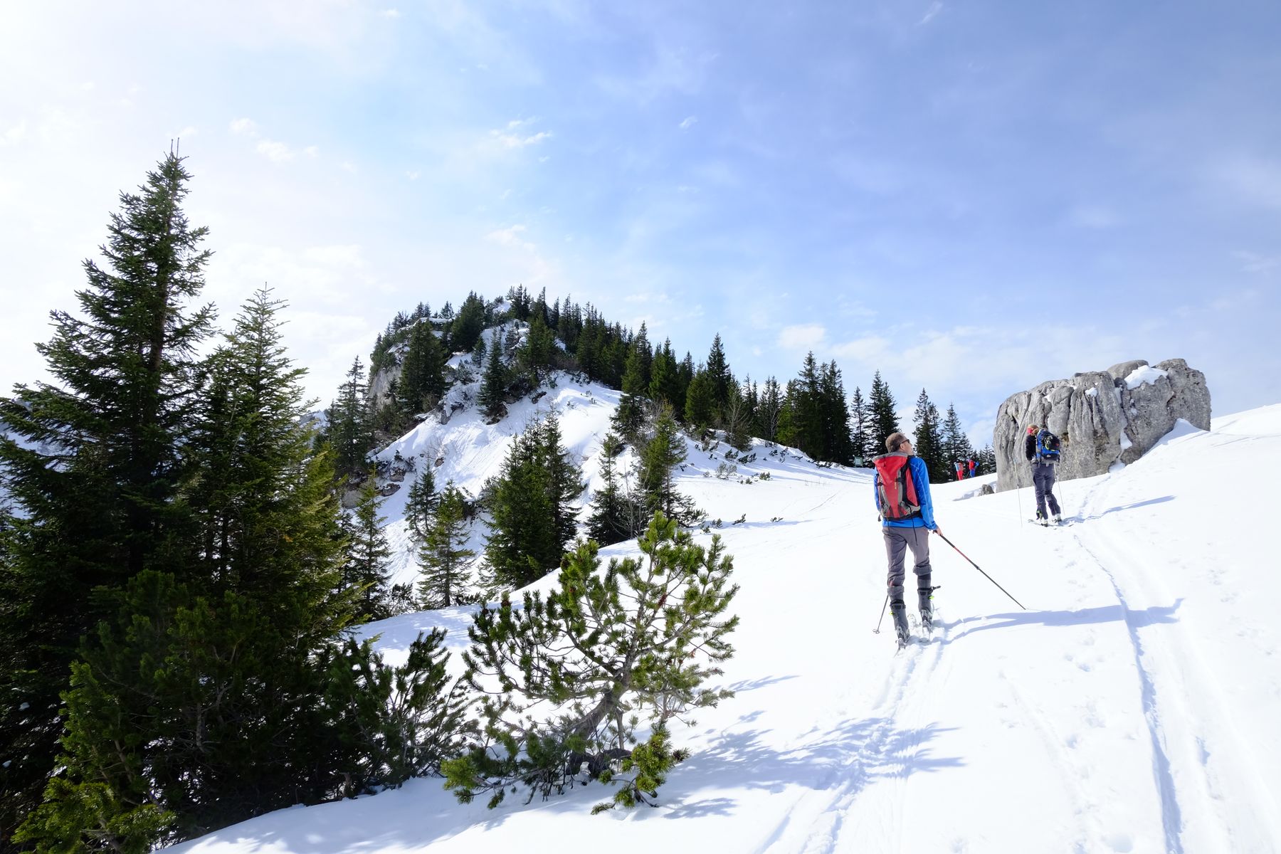 Nach kurzer Abfahrt am Rotwandhaus vorbei und Wiederaufstieg zur Auerspitz. Abfahrt über Auerspitznordhang an der Westseite der Ruchenköpfe vorbei ins Großtiefental. Aufstieg zum Miesingsattel und weiter zum Taubensteinhaus und Taubensteinsattel zur Abfahrt über Lochgraben. Schöner Ausklang an der Rauhkopfalm.