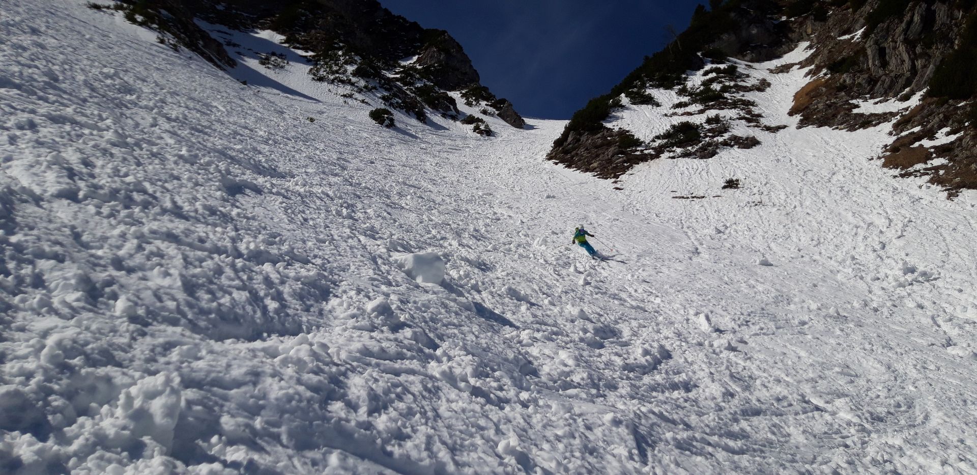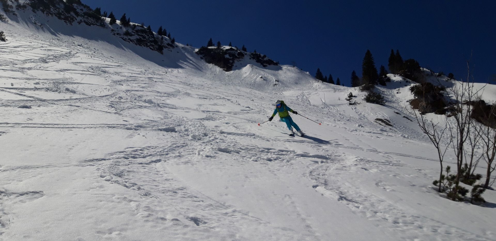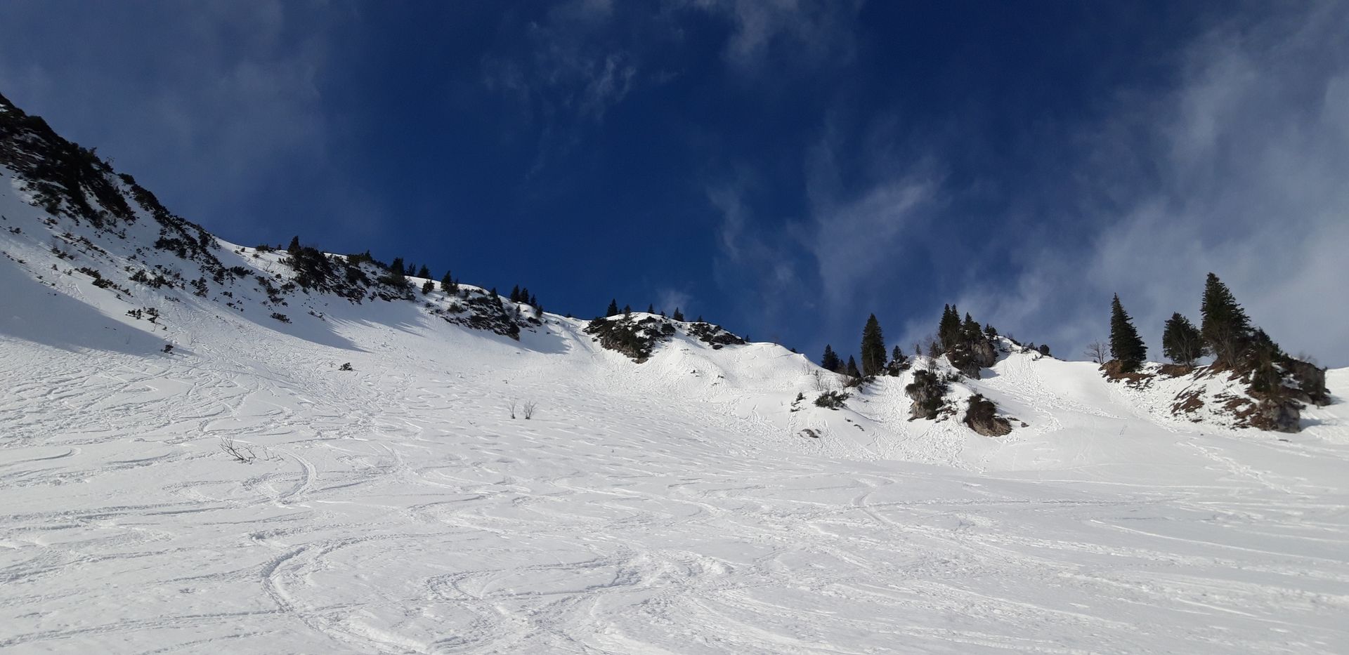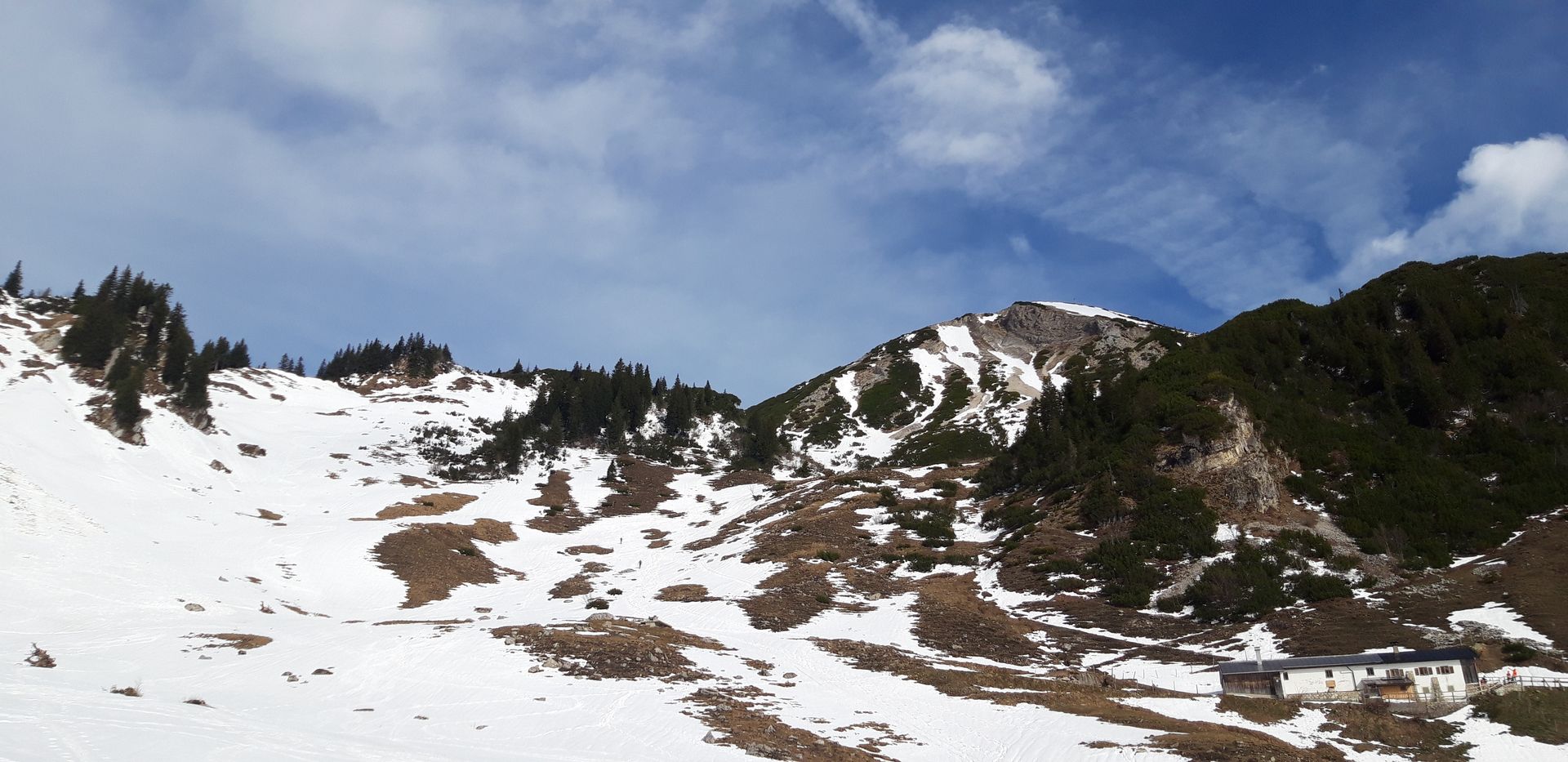 Prognose: Wenn wie angesagt jetzt nochmals ein kräftiger Neuschneeschub kommt, sollte man berücksichtigen, dass fast die gesamte Abfahrt vom Geigelstein keine Unterlage mehr hat. Die Westabfahrt zur Priener Hütte konnte ich nicht ganz einsehen, aber da wird schon noch was liegen. Mühlhornwand hat genug Schnee.