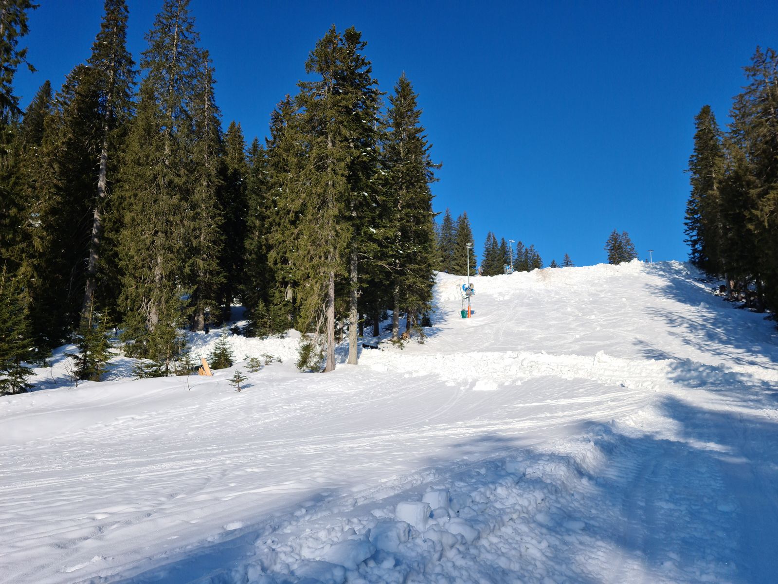Die Abfahrt bis zum PP Lyralift ist für die Jahreszeit und trotz fehlendem Skibetrieb in sehr gutem Zustand. War halt am Morgen um kurz nach 8 noch recht ruppig.