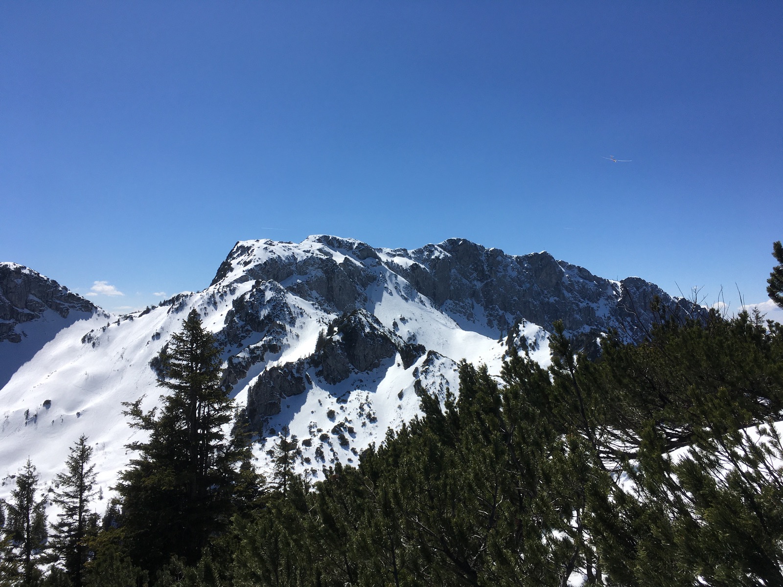 Heute gab es eine kombinierte Radl-/Skitour im Benediktenwandgebiet - eigentlich sollte es mit dem Radl zur Tiefental-Alm gehen und dann direkt mit den Kurzski weiter. Doch liegt schon auf der Straße zur Melchersteffl-Alm Schnee (noch passabel mit dem Radl passierbar), hinter der Alm beginnt dann eine nicht mehr befahrbare Schneedecke mit einzelnen Lücken hoch zum Sattel auf ca. 1.100 m (bei der Sattel-Alm). Das Ganze war doch recht anstrengend und nervig, im Gewirr der teilweise neuen Forststraßen landete ich dann am Längenberg und so ging es ungeplant überwiegend mit den Skiern über den Kamm und dann die Rinne zwischen Probstenwand und Hennenköpfl hoch. Da dann auch die Tageszeit schon zu fortgeschritten war und der Schnee in der Sonne schon recht tief, beließ ich es bei der Probstenwand.