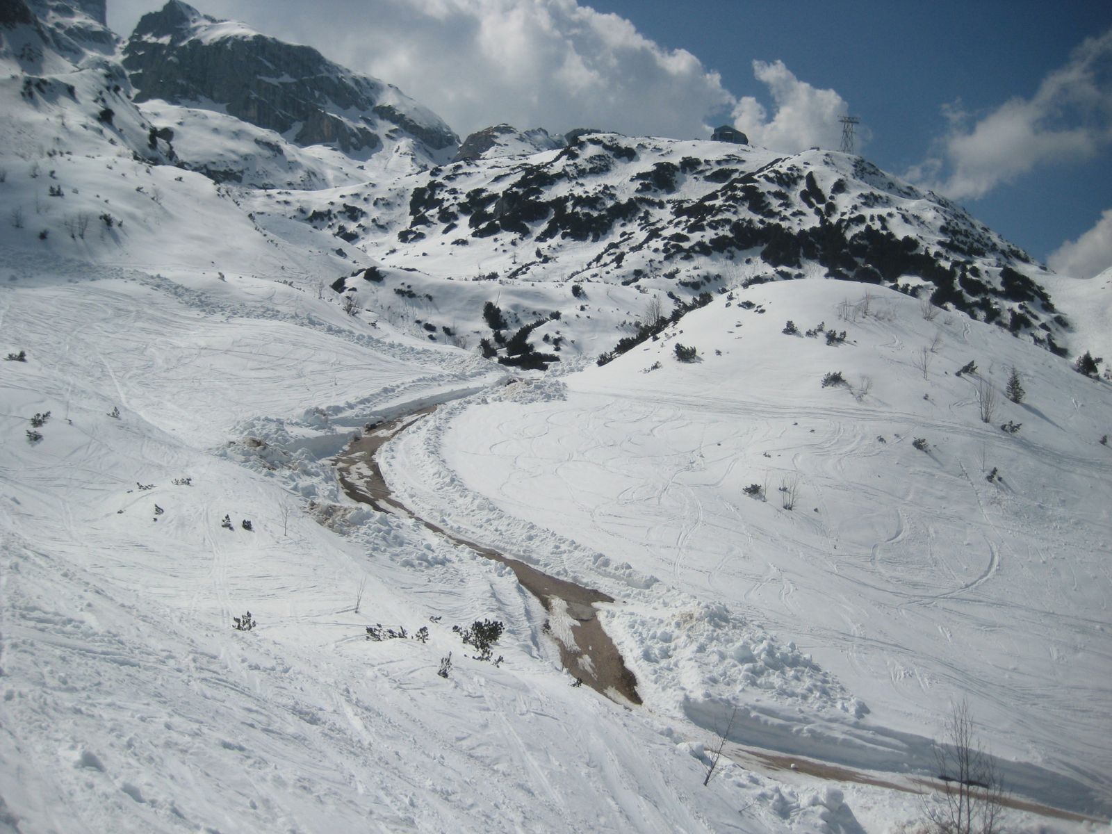 Schnee noch fast bis zum Parkplatz! Wird aber schnell weniger werden: