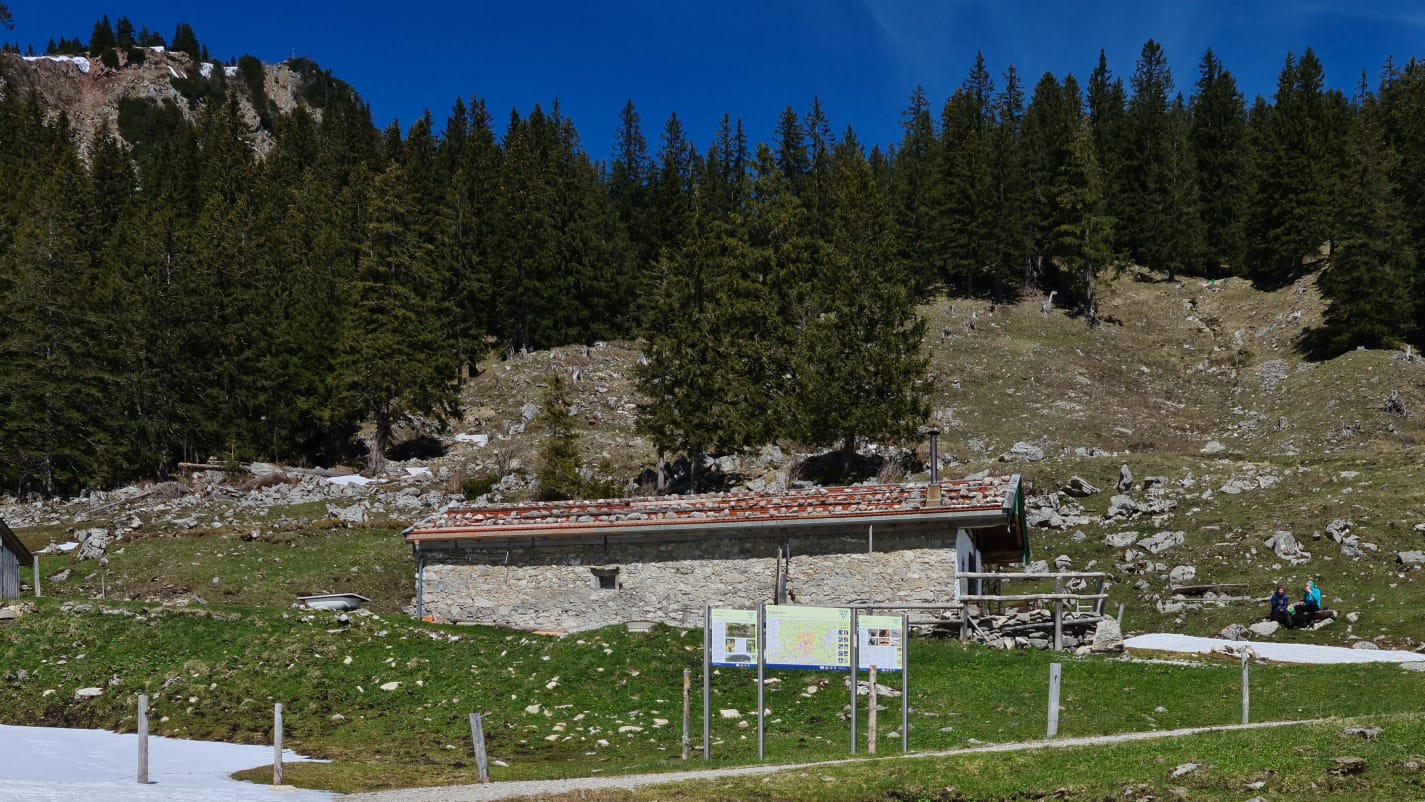Kurz vor der Haidenholzalm hat uns jemand darauf hingewiesen, dass oberhalb der Alm das Betreten des Naturschutzgebiets bis Ende Mai verboten ist. An der Alm gibt es eine Tafel mit ausführlichen Informationen zum Naturschutzgebiet und den Sperrzeiten.