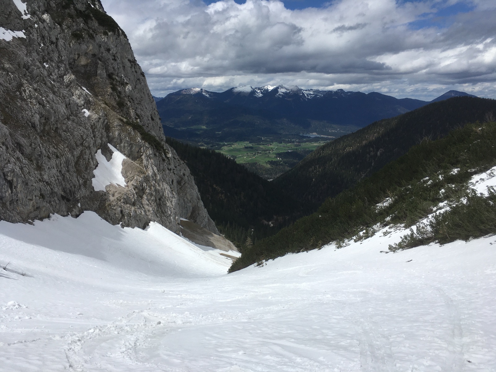Bei der Abfahrt gibt es auch einen Blick hinüber zum Aufstieg in das Hintere Dammkar (wurde auch gemacht):