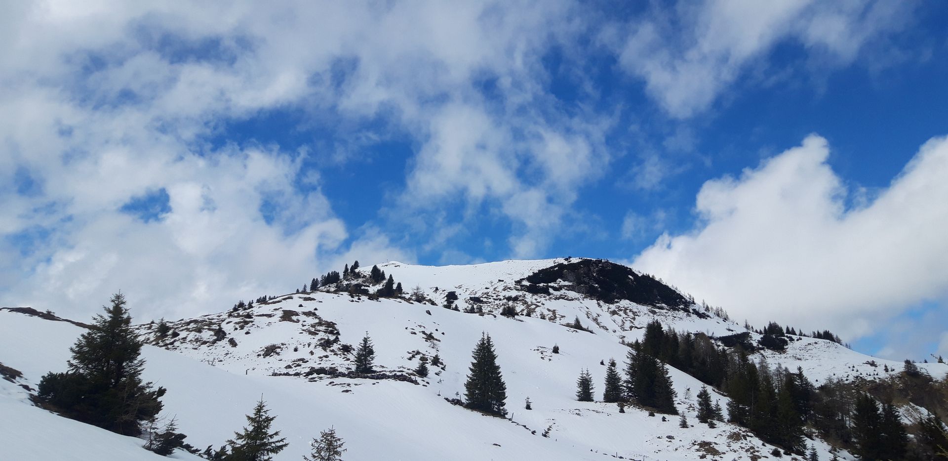 Vom PP bin ich über Bründl- und Jocheralm sowie die Seewaldhütte zur Hochplatte hinauf. Mit Gewinn kürzt man dabei, teils nicht markiert, aber deutlich zu erkennen, den Großteil der Fahrwege bis zur Seewaldhütte auf schönen Waldsteigen ab. Diese Steige durch meist lichte Baumbestände machen die Tour meiner Meinung nach übrigens erst lohnend. Bis zur Hütte (1582m) sind die Wege trotz des nächtlichen Regens trocken. Oberhalb hat es allerdings wieder geschneit (siehe Bilder) und es ist auf den steilen Grashängen unter dem Gipfel sehr rutschig.