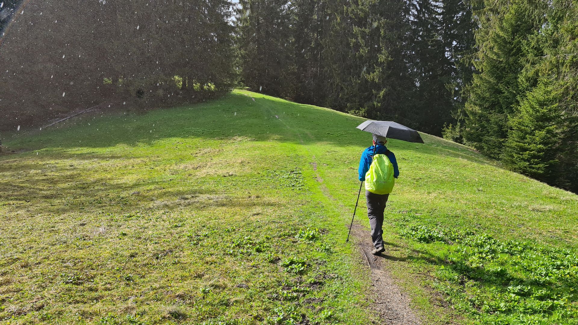 Ein kurzer und schwacher Graupel- und Regenschauer, zum Teil mit gleichzeitigem Sonnenschein, hat uns dann doch noch erwischt und die erhitzte Luft rapide abgekühlt.