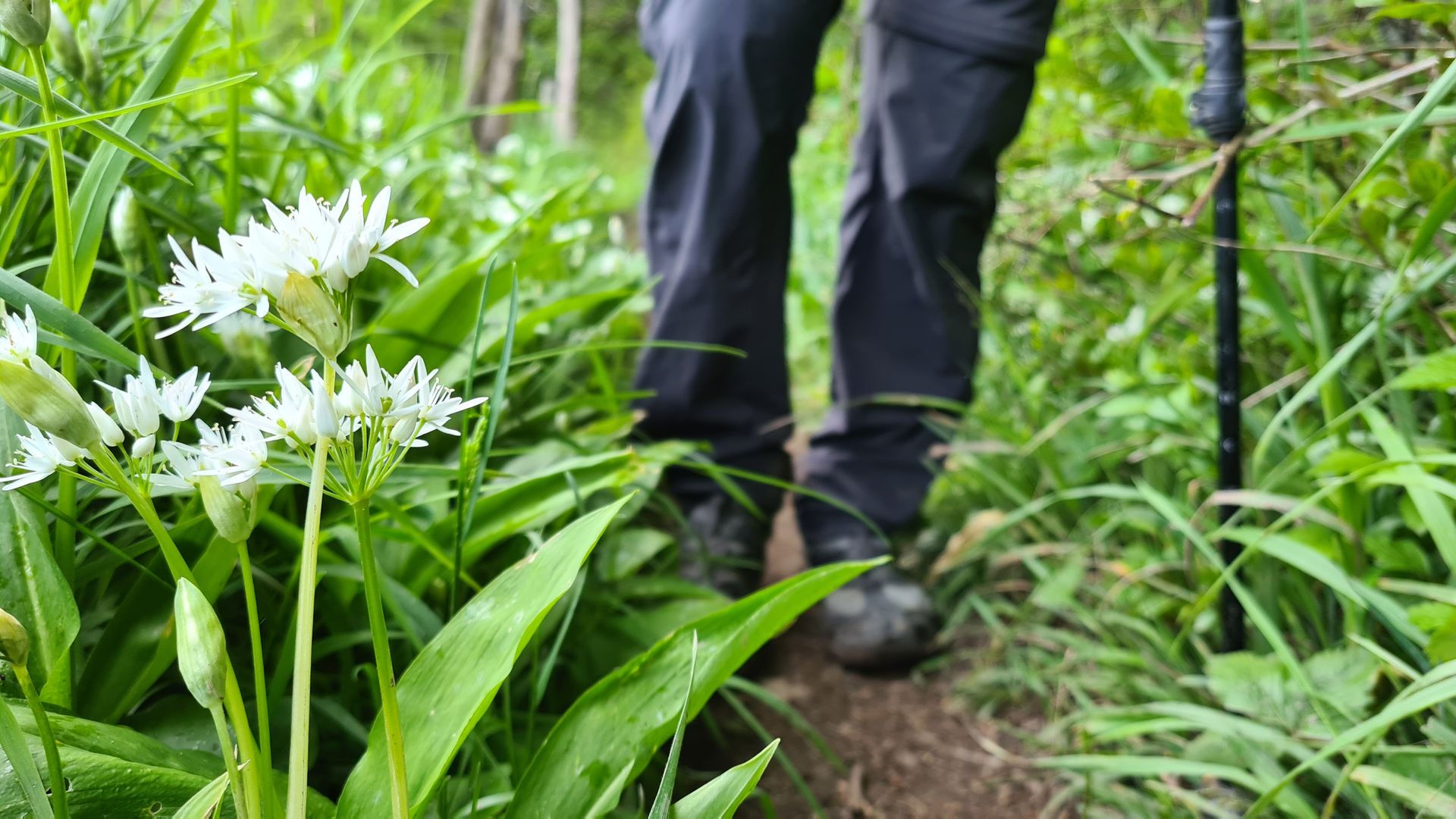 Sehr steil ging es den Maximiliansweg entlang und am Schlossweiher vorbei hinauf durch den wunderschön hellgrün beblätterten Buchenwald. Die Ausblicke im oberen Teil des Aufstiegs ins Karwendel und auf das Isartal bei dem Sonne-Wolken-Drama waren wirklich herrlich. Damit es nicht allzu poetisch wurde, hatten wir auf einigen Steig-Abschnitten noch zünftigen Matsch als Zugabe.