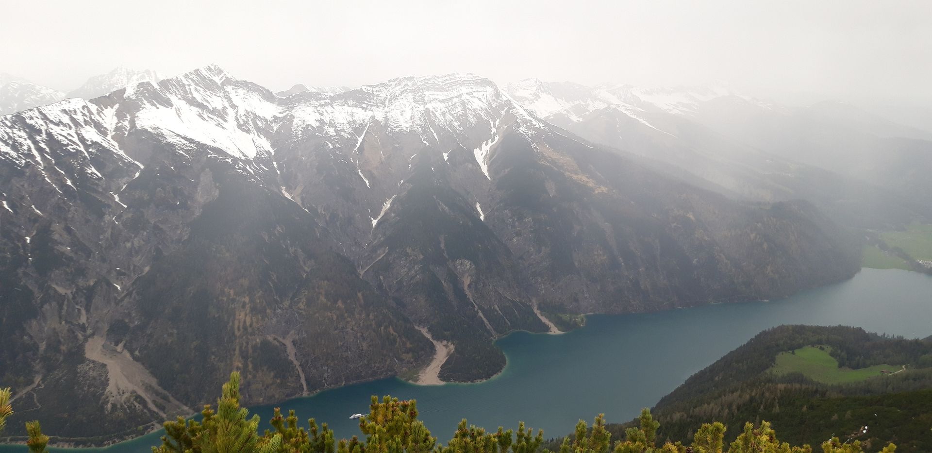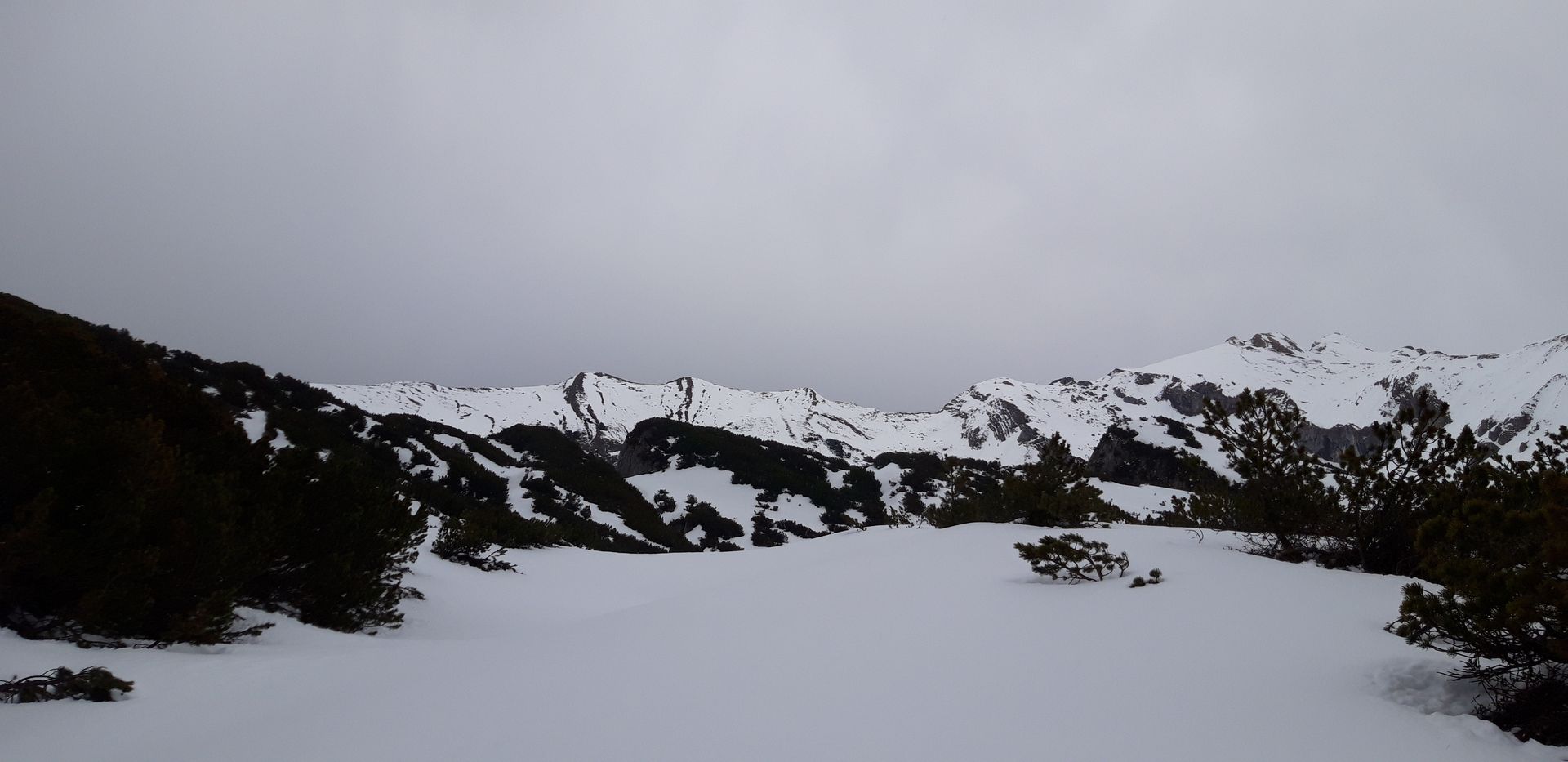 Heute hab ich mit dem Klobenjoch eine meiner Lieblingstouren am Achensee gemacht. Vom PP geht es zunächst auf einer normalen Straße zum Kinderhotel Buchau, wo der Steig zur Dalfazer Alm beginnt. Oberhalb der Alm folgt man nicht den Beschilderungen, sondern einem unmarkierten Steiglein nach links bis zu einem Gatter. Ab hier heißt es dann "Immer der Nase nach, Katczinsky!" Der Weg zum Klobenjoch ist nämlich weder beschildert noch markiert und die Trittspur verliert sich immer wieder. Generell kann man die Jagdsitze als Orientierung nehmen, wobei man vor dem sehr auffälligen, in eine große Lerche gebauten , nach rechts in ein schönes Tal abzweigt. Bis zum Ende dieses Tales war der Aufstieg schneefrei und trocken. Die letzten 100 Höhenmeter durch Latschenfelder brachten dann aber recht tiefen Schnee.